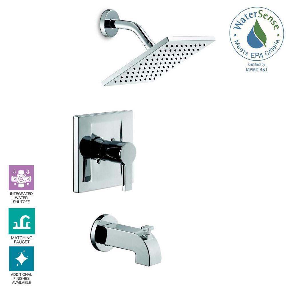 The Glacier Bay Modern Single-Handle Tub and Shower Faucet in Chrome provides a sleek and contemporary design at an affordable price. This unit includes the rough-in valve to provide a one-stop solution for your shower upgrade. WaterSense certified, this faucet has a 1.8 GPM flow rate to help reduce water use and a ceramic disc valve for smooth operation and long life. While the unit uses less water, the showerhead provides a superb showering experience. Featuring an 8 in. wide spray face, the showerhead provides an increased spray force and a wider spray pattern. The single-handle design gives you convenient, 1-handed control over water flow and temperature. This unit includes a pressure balancing system to ensure a comfortable and consistent showering experience.
