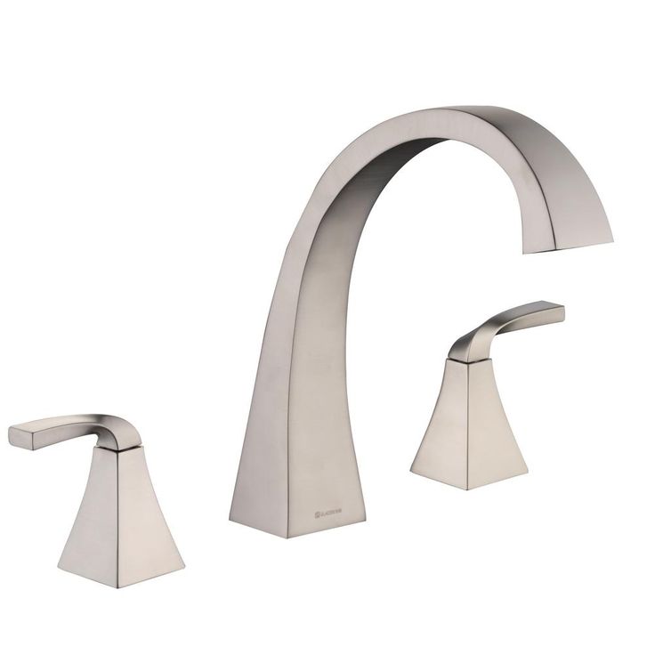 The Glacier Bay Leary Curve 2-Handle Deck-Mount Roman Tub Faucet in Brushed Nickel curved lines and sharp angles will complement any decor. The 2.4 GPM minimum flow rate provides excellent water pressure for a superb bathing experience. Ceramic disc valves ensure drip-free performance. The beautiful high-arc spout provides extra clearance and the two-handle design features separate handles for hot and cold water for precise adjustment. Pair this roman tub faucet with other products in the Leary Collection for a complete and polished look for your bathroom.