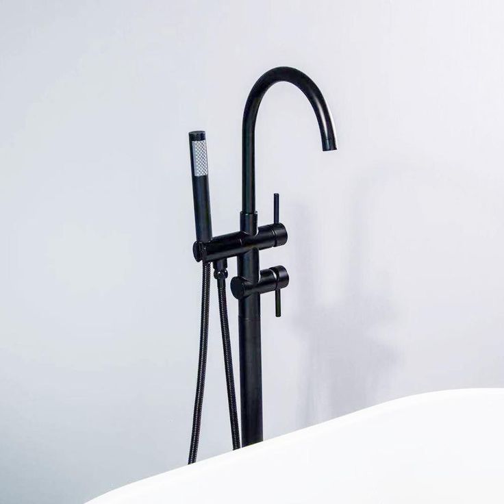 • 1-piece freestanding claw foot tub faucet with hand shower in matte black finish