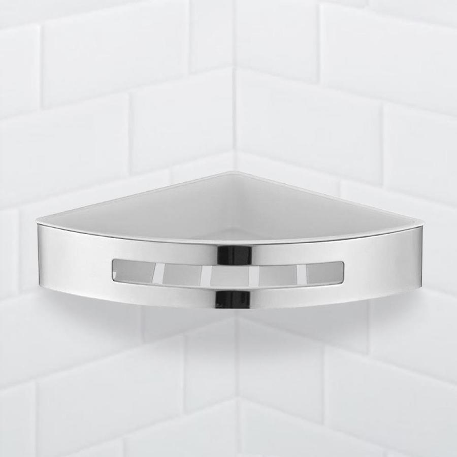 Corner shower basket Polished chrome finish Made out of brass Easy installation Mounts to wall with screws From the Nameeks general hotel collection