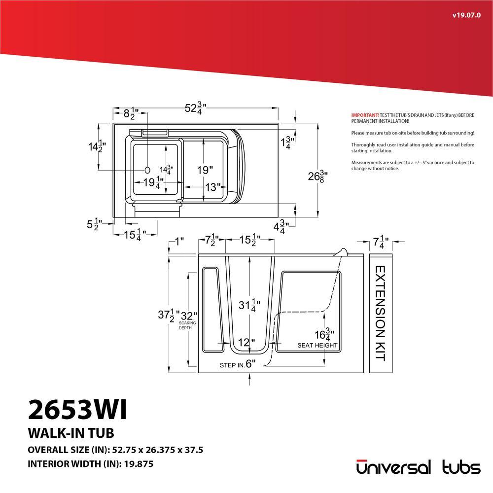 26x53 Right-Drain Quick-Fill Walk-In Soaking Tub, Biscuit