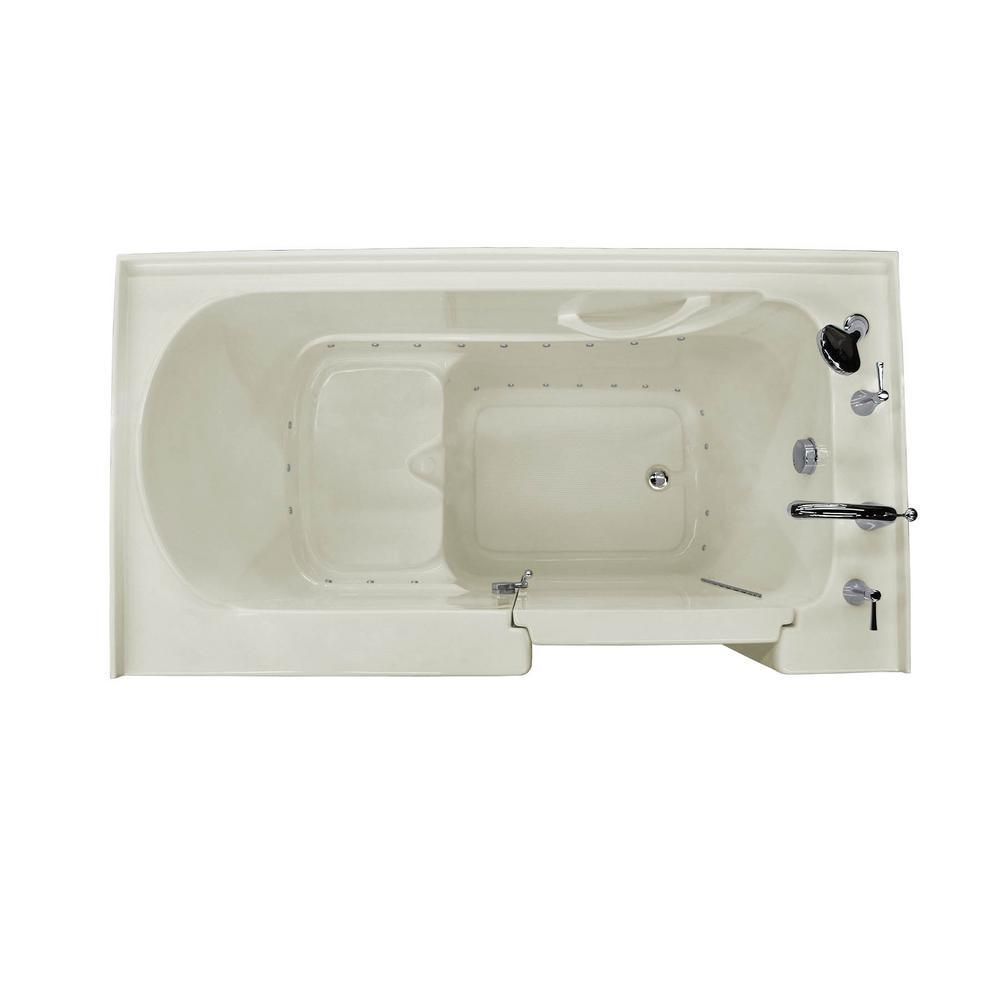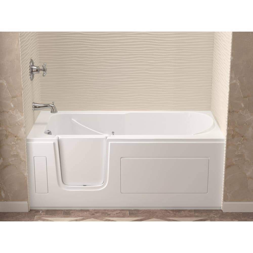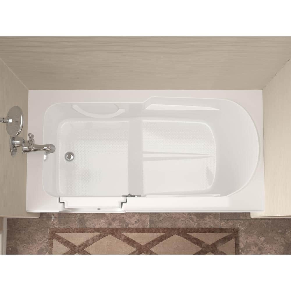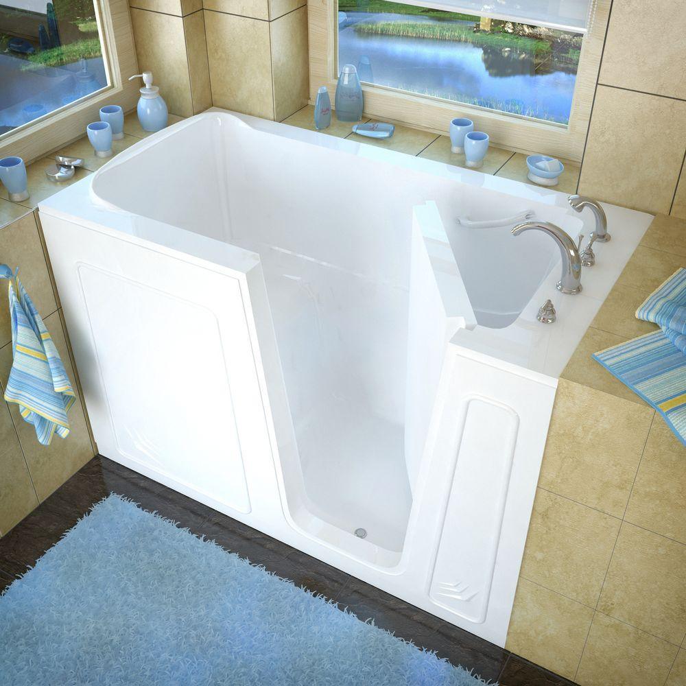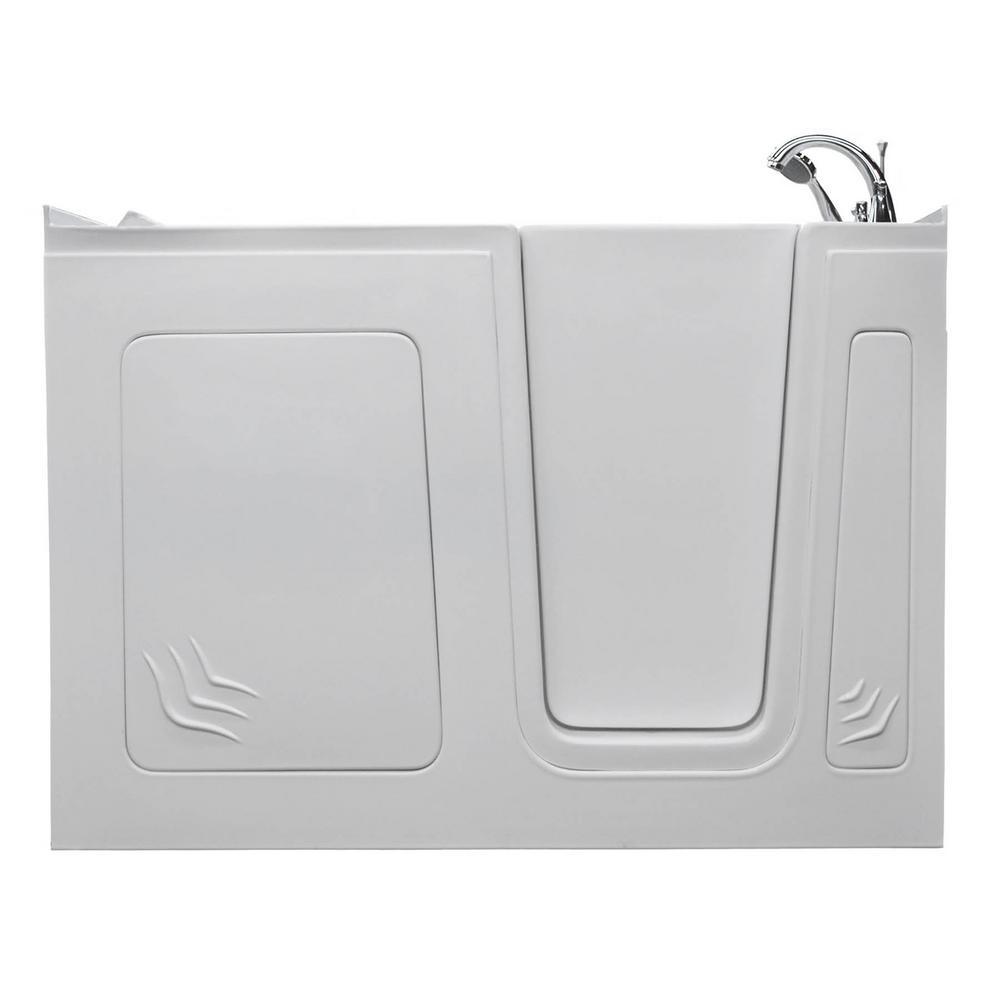 A safe, step-in walk-in soaking tub designed to retrofit standard bath alcoves. Features a watertight wide-swinging door, low entry threshold, and molded soaking seat for comfortable, independent bathing.