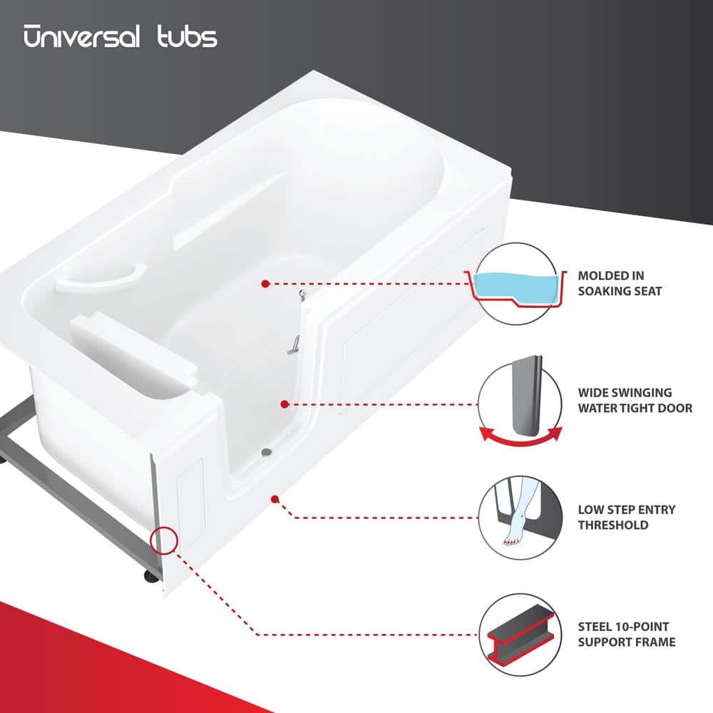 Universal Tubs HD Series 32 in. x 60 in. Right Drain Quick Fill Walk-In Soaking Bathtub in White