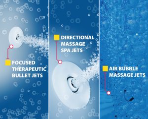 Therapy Jets Whirlpool jets with targeted lower-back massage; directional massage jets; air bubble jets (varies by configuration)