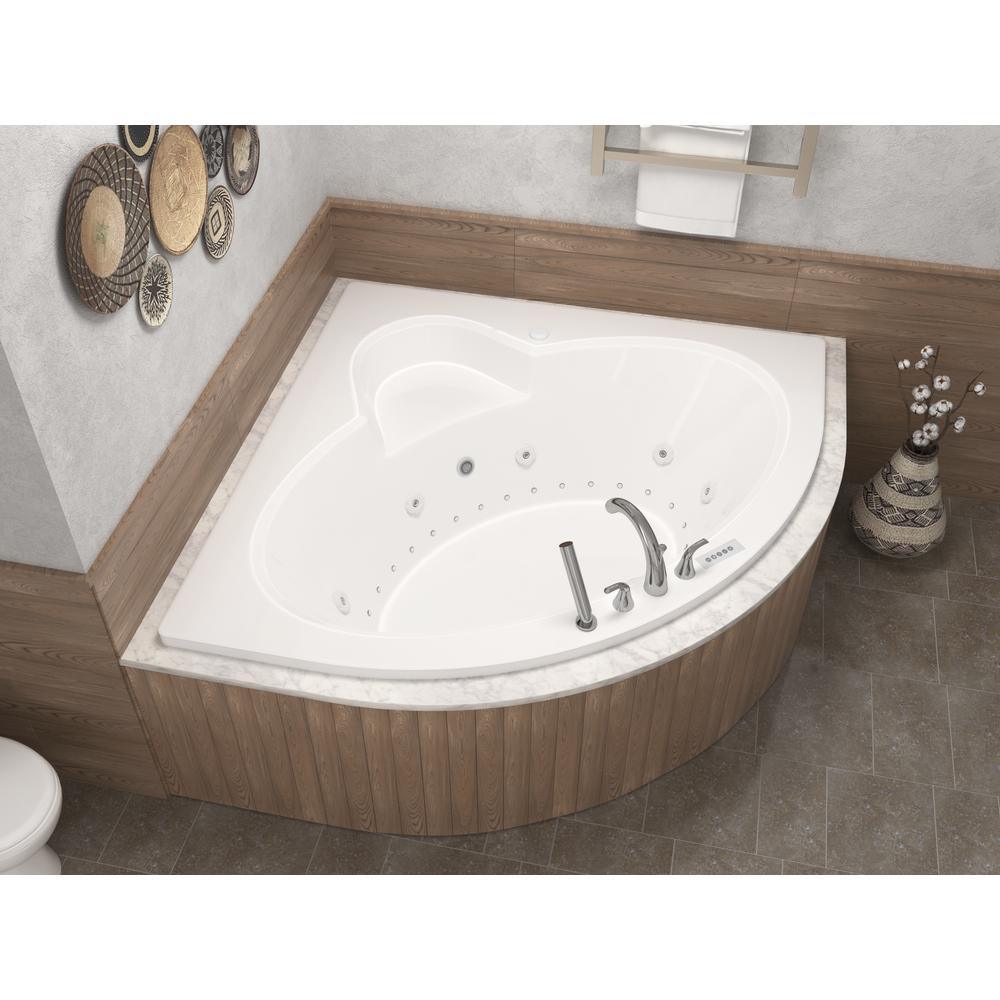 This 5-foot Jasper Diamond corner tub blends invigorating whirlpool jets with soothing air massage in a durable white acrylic shell. Designed for two, it features a molded seat, center drain, and a sleek drop-in profile to elevate spa-like comfort at home.
