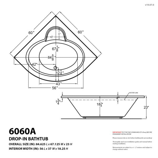 Jasper Diamond Corner Air & Whirlpool Drop-in Bathtub