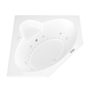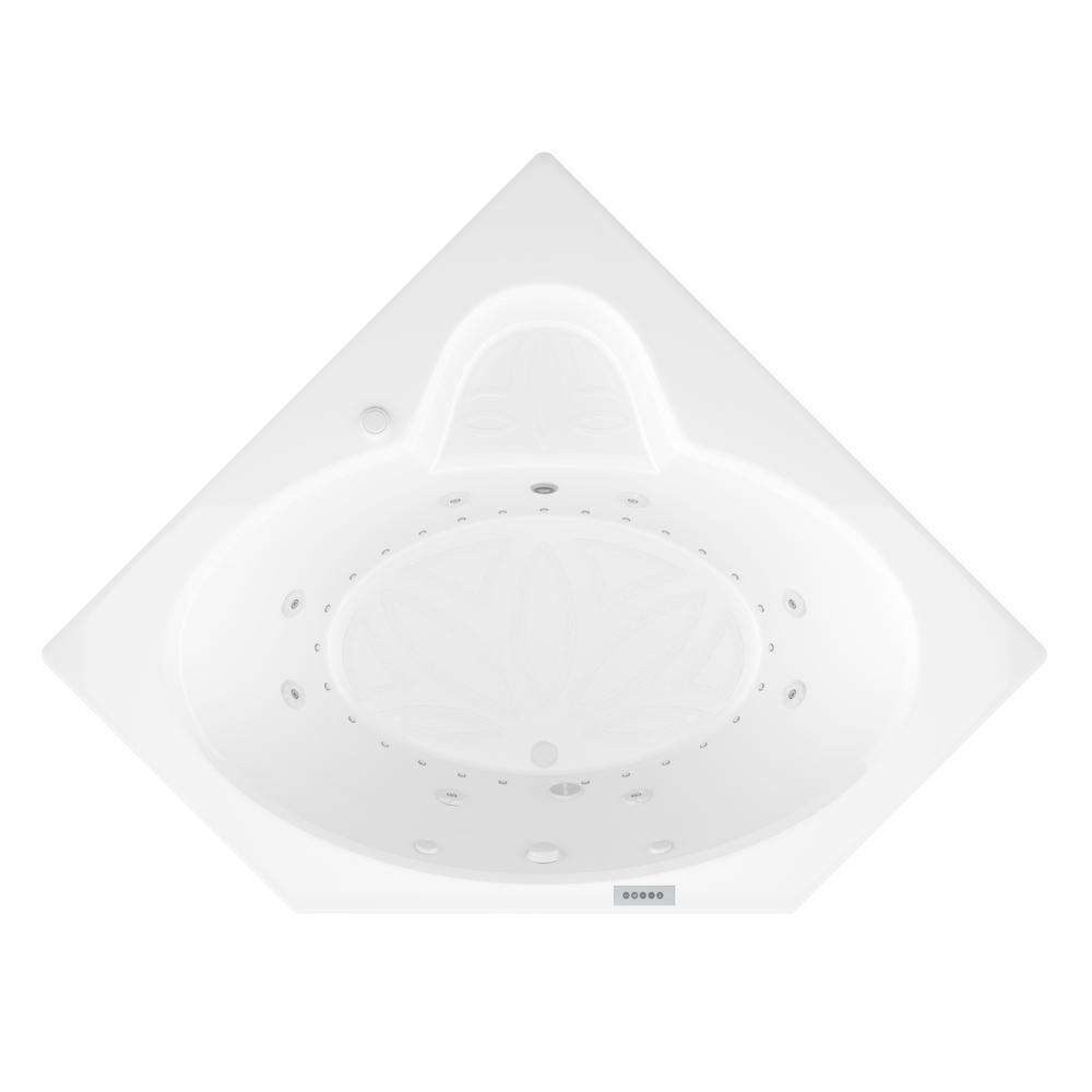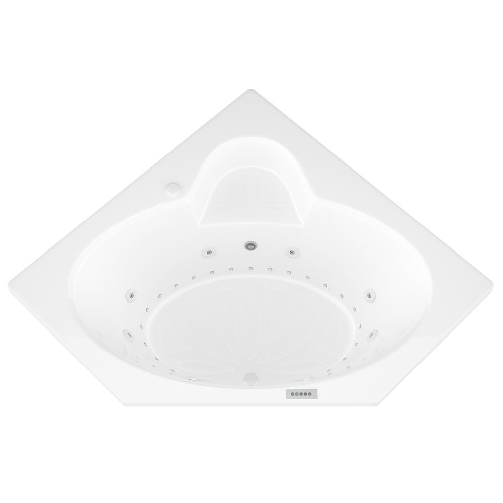 A 60 x 60 in. corner drop-in acrylic tub blending whirlpool and air jets for full-body hydrotherapy. Built with glossy white marine-grade acrylic reinforced with fiberglass, it features center drain, molded seat, and luxury options like chromatherapy, aromatherapy, heater, and ozonator.