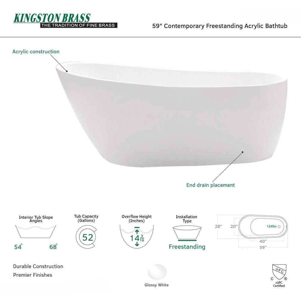 With elegant looks, the Fusion Freestanding acrylic tub transforms your bathroom into a personal spa. Relax comfortably with the classic slipper design in a durable acrylic tub constructed. The bathtub Includes waste and overflow and holds up to 52 Gal. of water for a spa like experience.