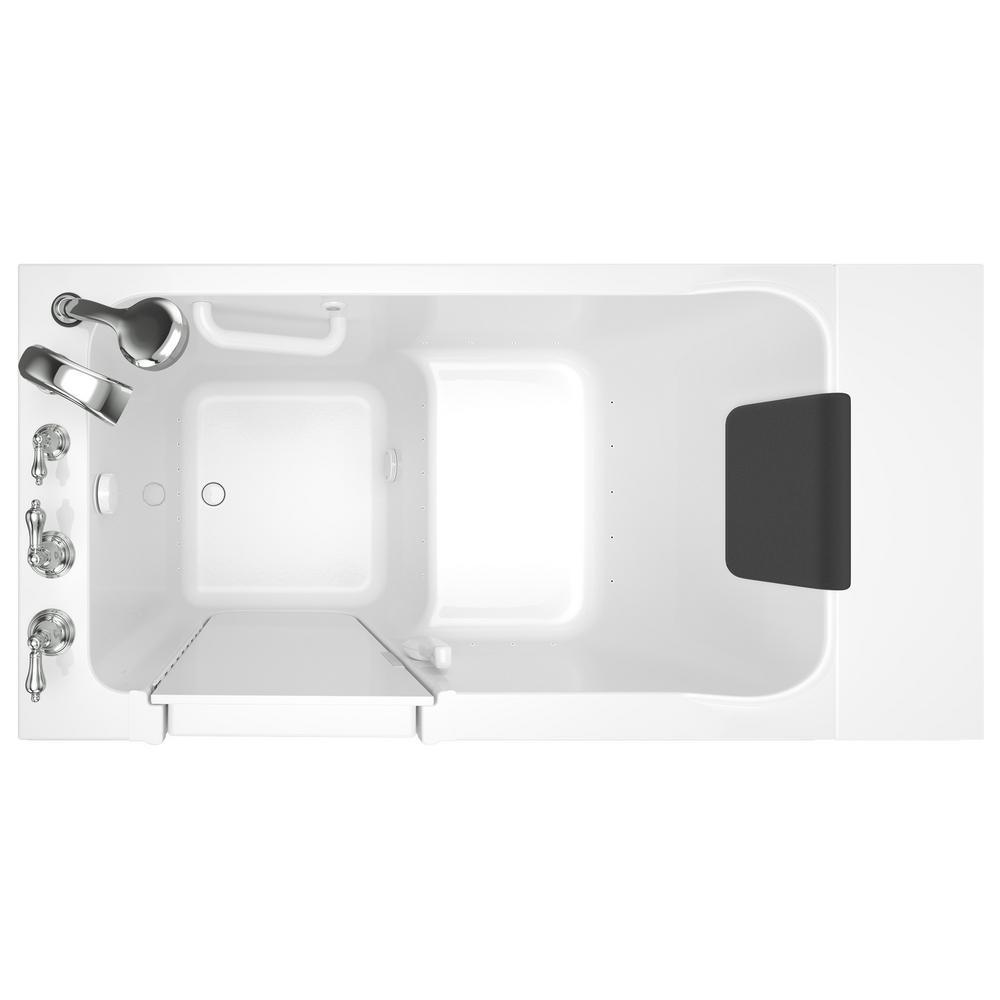 The American Standard 30 in. x 51 in. Acrylic walk-in bath provides a similar bathing experience to larger models but fits in smaller spaces and uses less water. The included tub extender allows this tub to retrofit in the same space as a standard bathtub. The full sized, V-shaped door with a low door threshold allows ease of entry and exit. Fully equipped, the 119 Premium Series offers all the latest in safety and comfort features with the most advanced therapeutic options therapeutic options and backed by a lifetime warranty on the door seal, a 15-year warranty on the tub shell and a 10-year warranty on all other components.