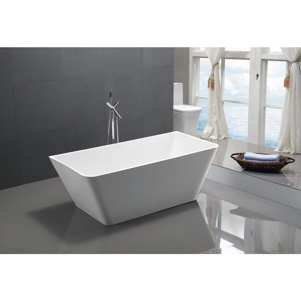 Sleek and modern, the ANZZI Kahl freestanding acrylic tub offers a deep, relaxing soak with clean rectangular lines. Crafted from marine-grade acrylic reinforced with fiberglass, it features a center drain with overflow and is pre-plumbed for straightforward installation.