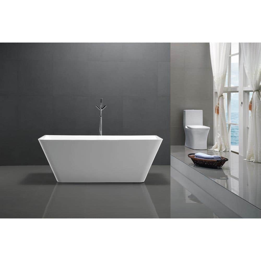 ANZZI Kahl 5.58 ft. Acrylic Flatbottom Freestanding Soaking Bathtub in White