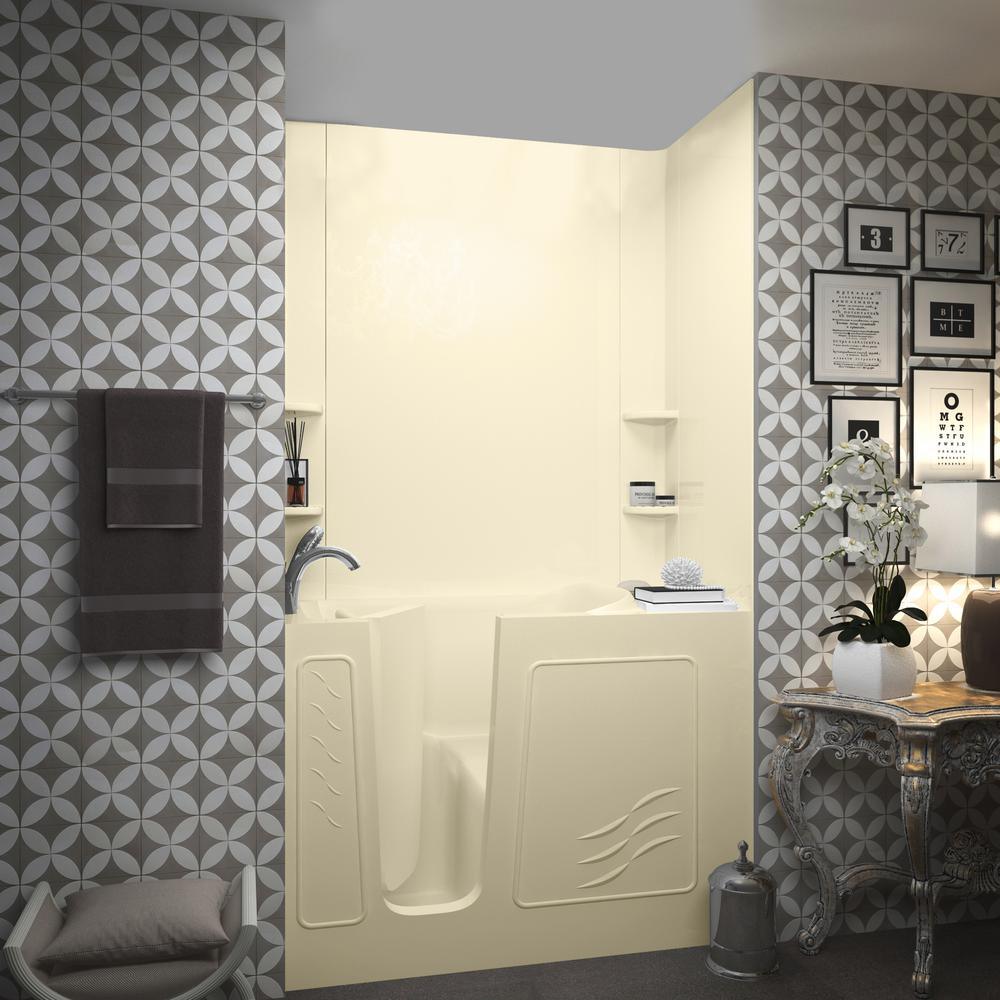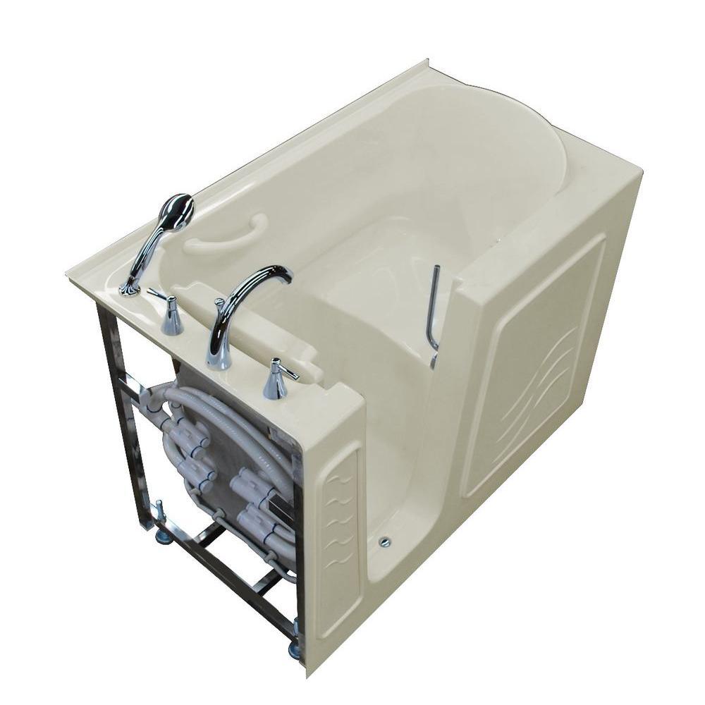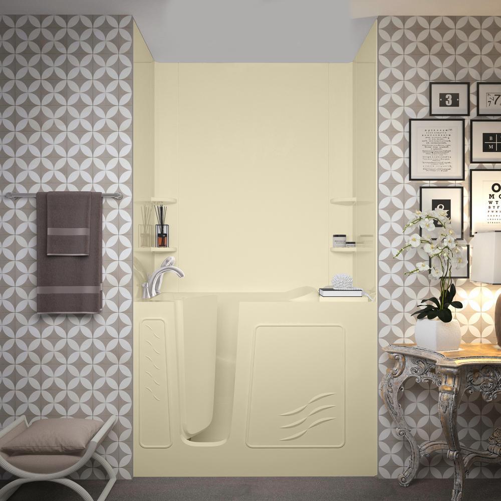 NOVA Heated Rampart 4.5 ft. Walk-in Non-Whirlpool Bathtub with Easy Up Adhesive Wall Surround in Biscuit