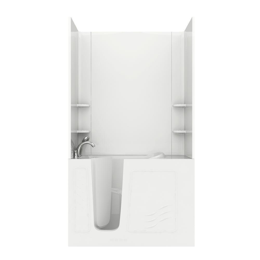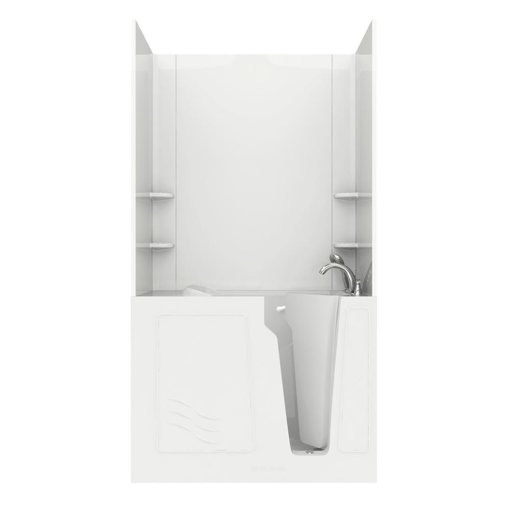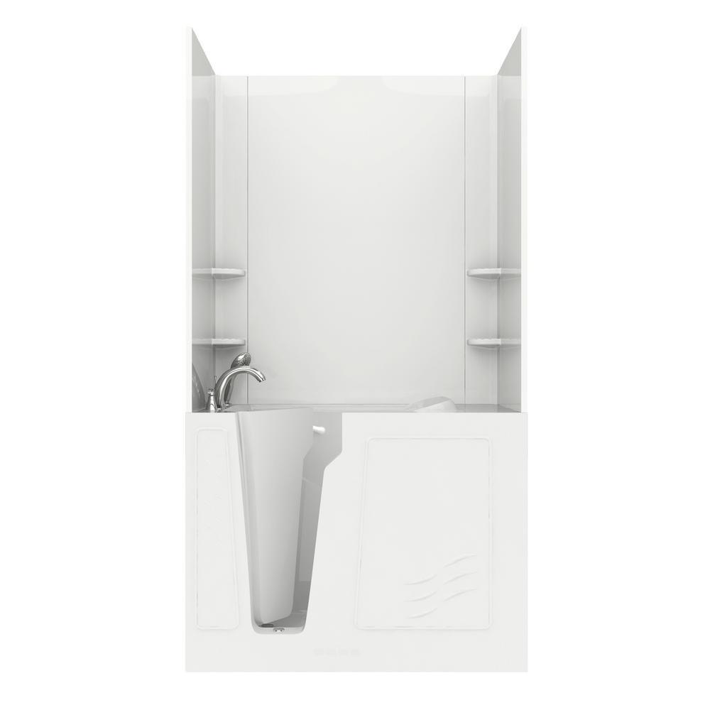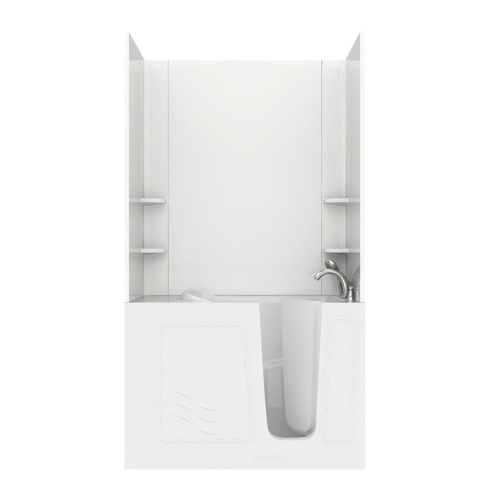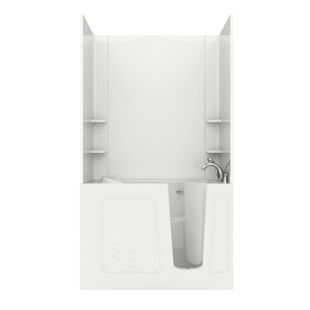 Universal Tubs Rampart Nova Heated 3.9 ft. Walk-in Whirlpool and Air Bathtub with Flat Easy Up Adhesive Wall Surround, Right Drain, White