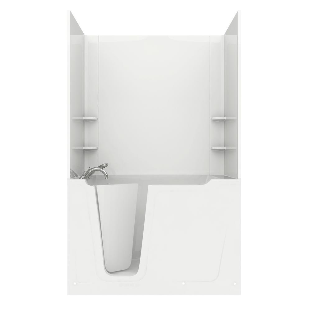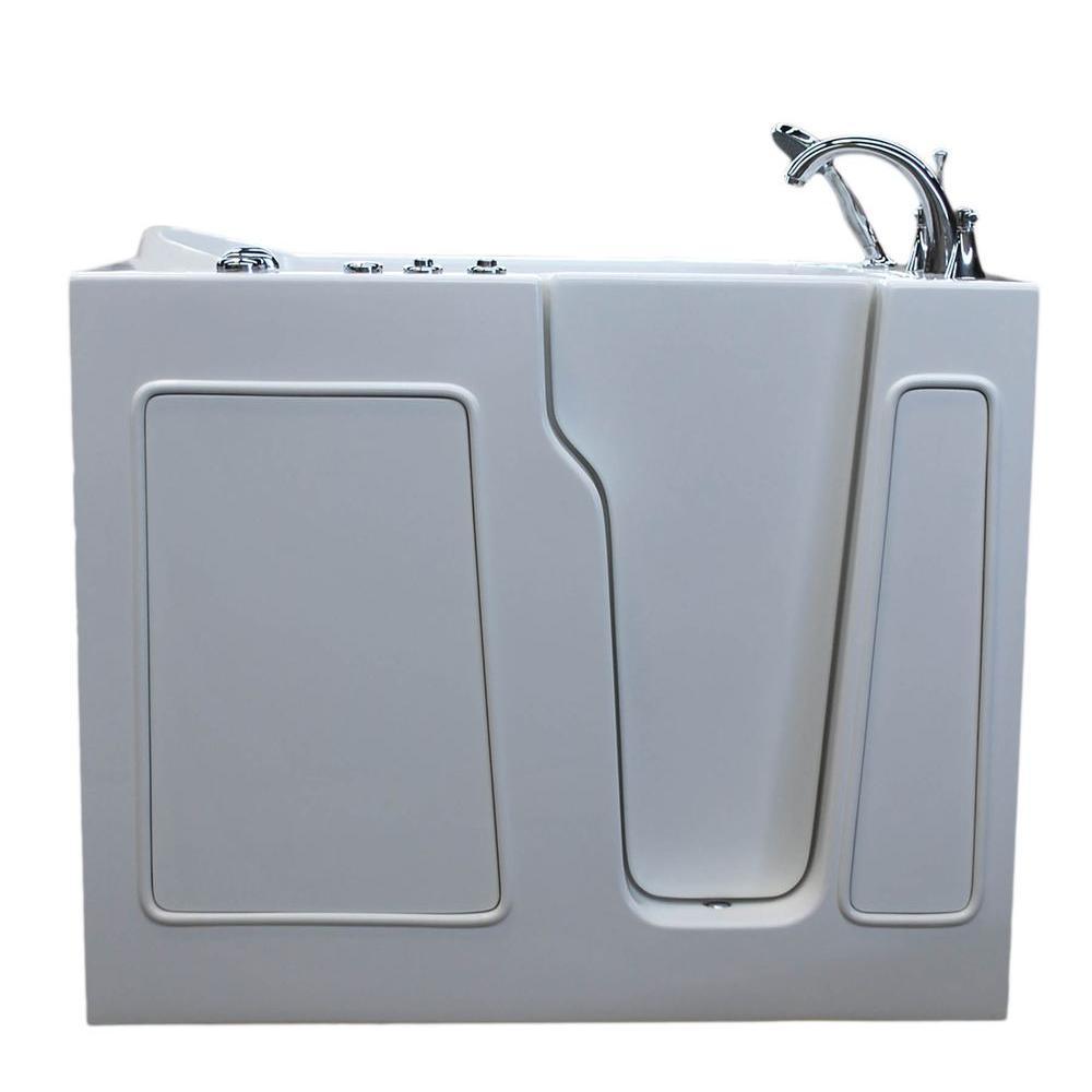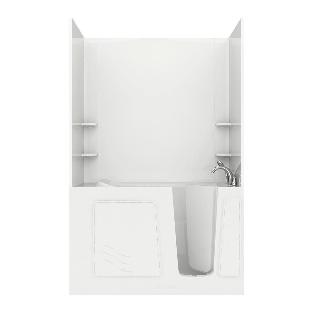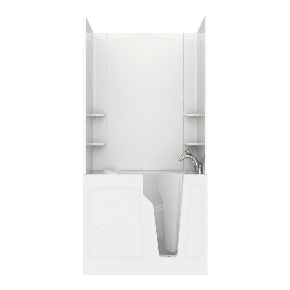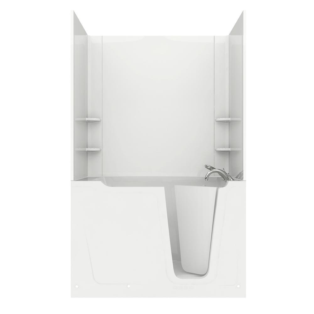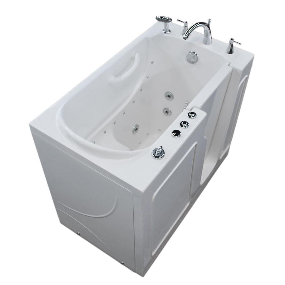 Universal Tubs Rampart Nova Heated 3.9 ft. Walk-in Whirlpool and Air Bathtub with Flat Easy Up Adhesive Wall Surround, Right Drain, White