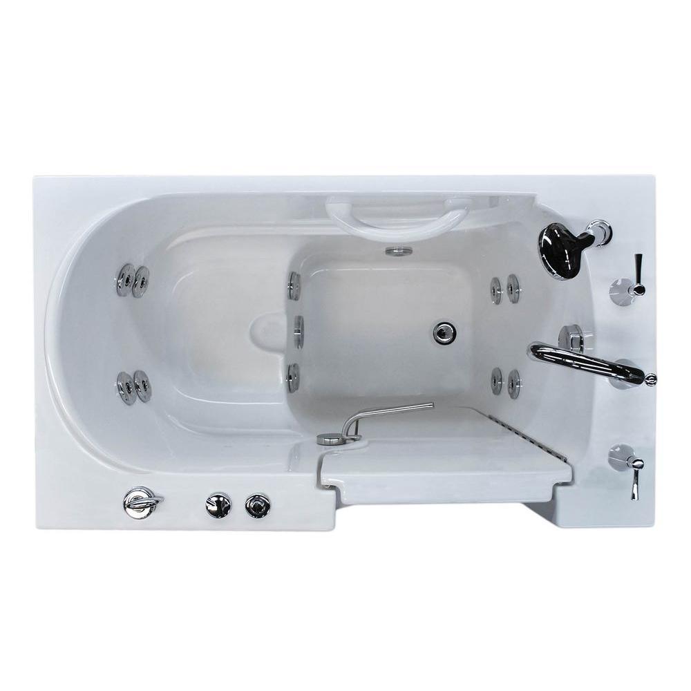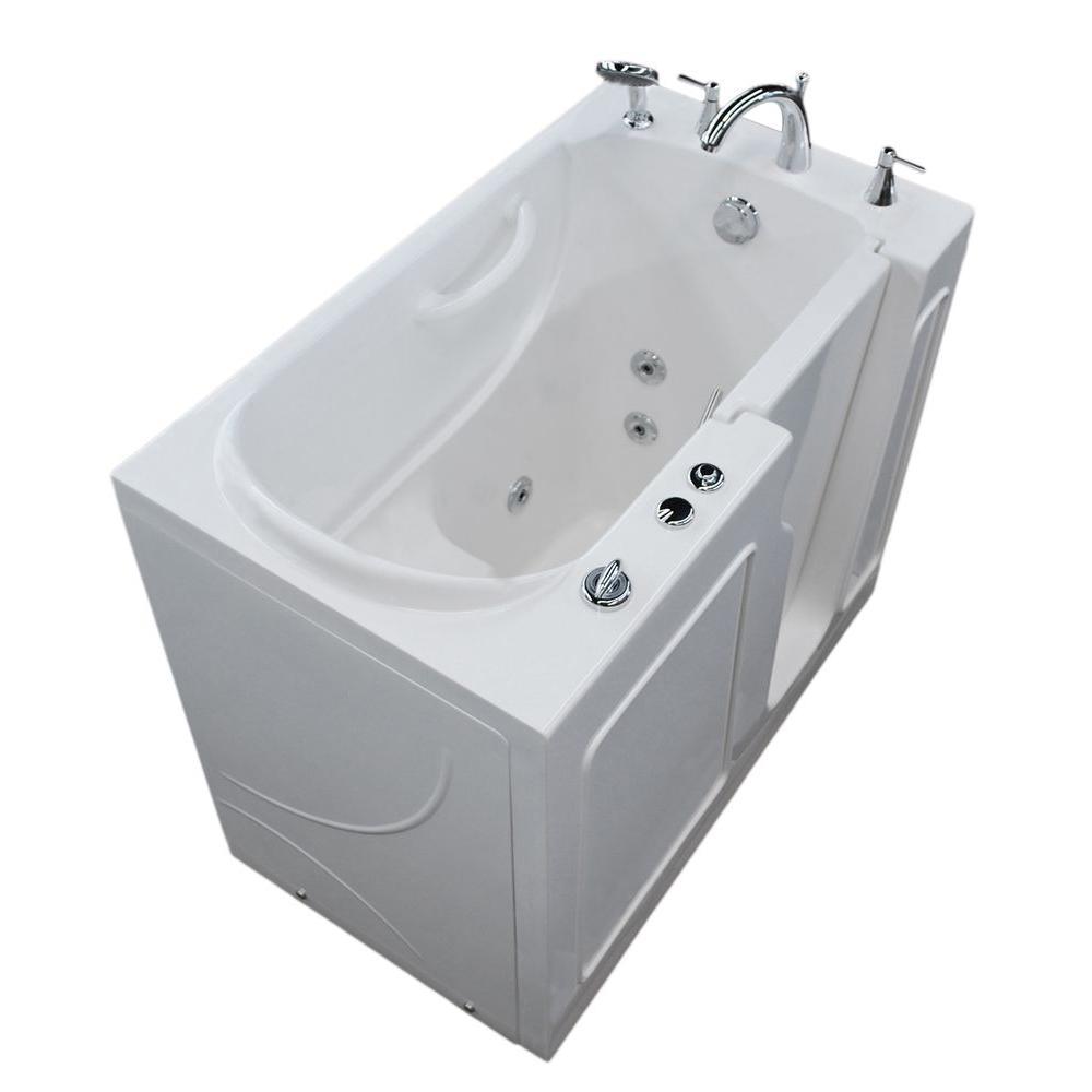 Rampart Nova Heated 3.9 ft. Walk-in Whirlpool Bathtub with 6 in. Tile Easy Up Adhesive Wall Surround in White