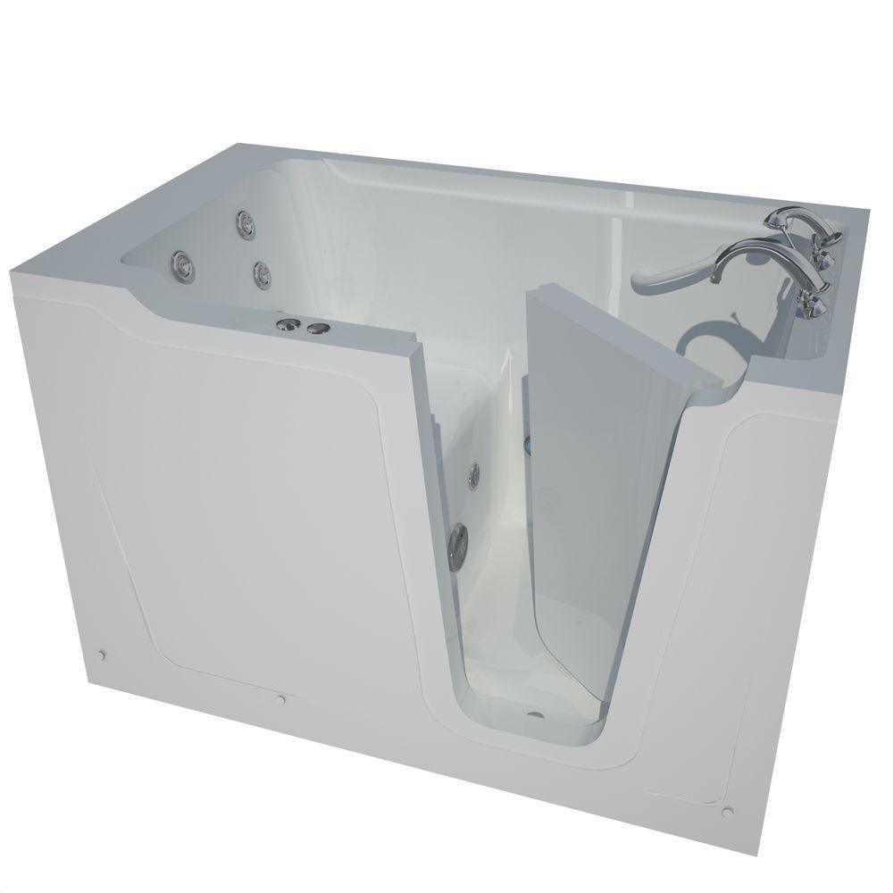 Rampart Nova Heated 5 ft. Walk-in Whirlpool Bathtub with 6 in. Tile Easy Up Adhesive Wall Surround in White