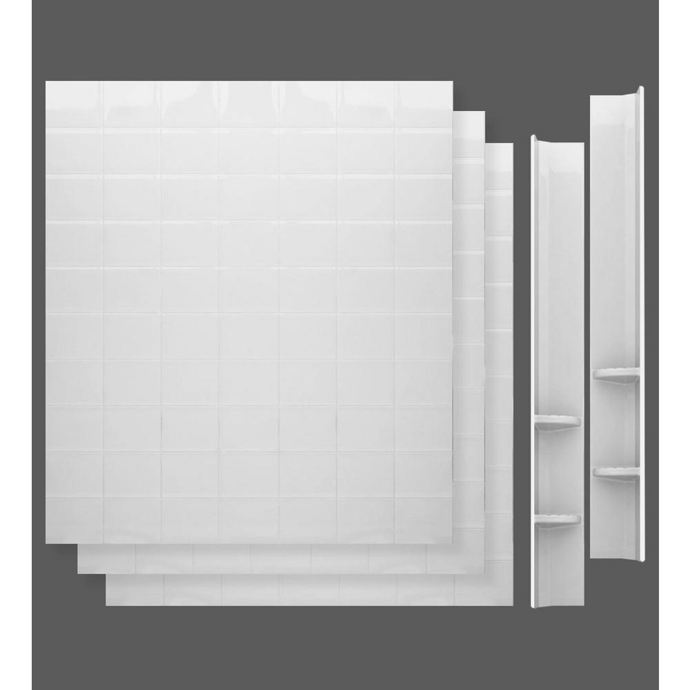 • Includes two (2) 60x60 in. 6 in. square tile rampart wall surround sheets, two (2) 60 in. tall corner caddies, ten (10) clear silicone tubes, double sided adhesive strips, two (2) caulking tubes, HD3660RWH Nova Heated walk-in bathtub