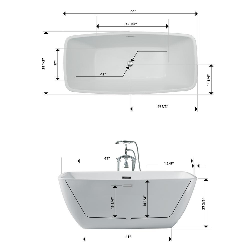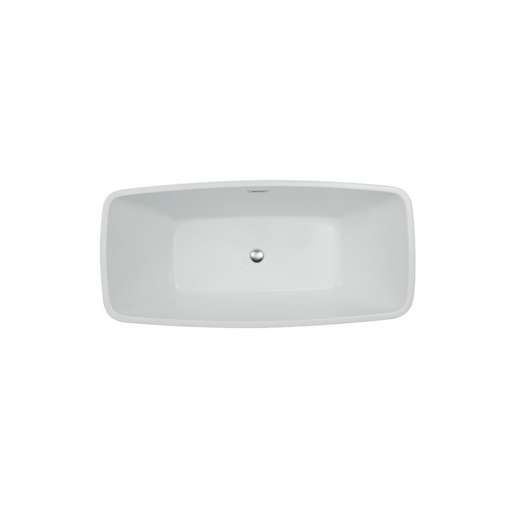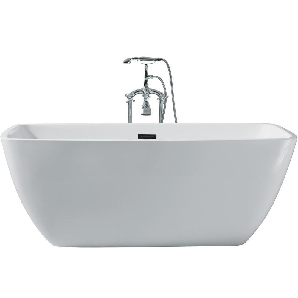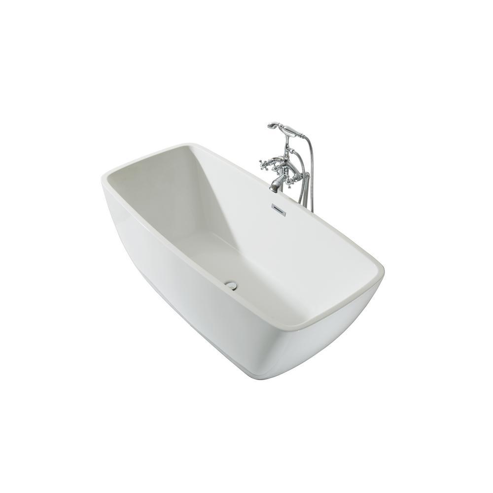 63 in. Acrylic Center Drain Rectangle Flat Bottom Freestanding Bathtub in White
