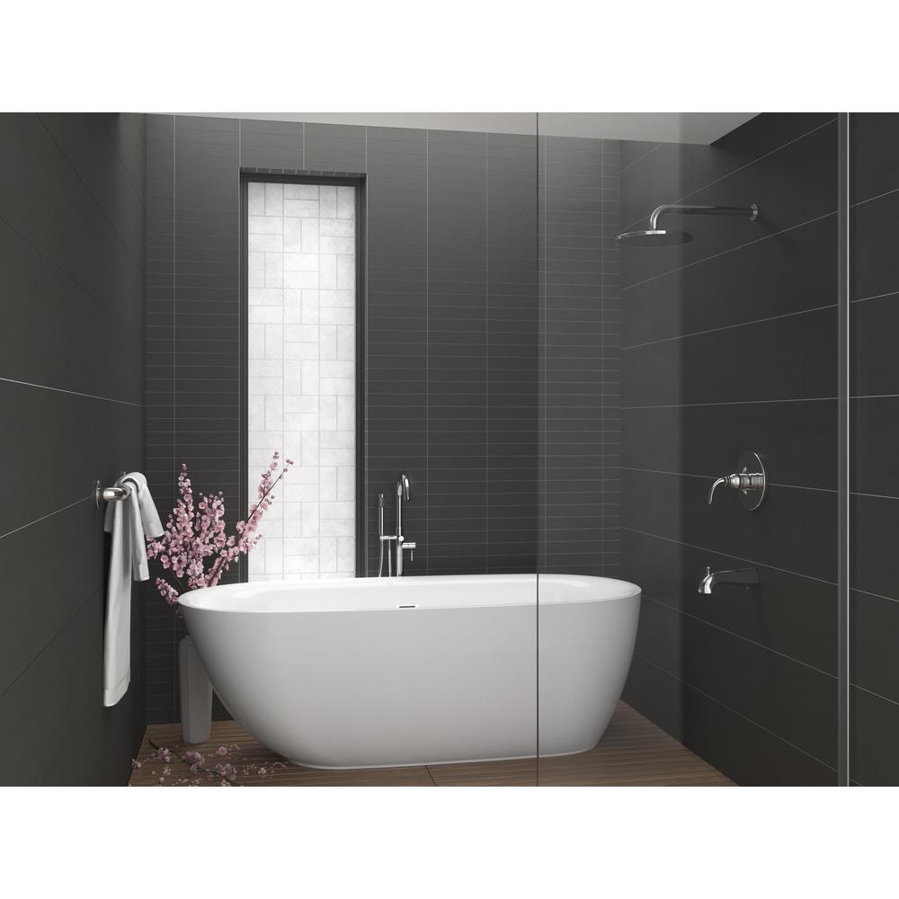 The ANZZI Ami is a 67-inch flat-bottom freestanding bathtub crafted from RHINO ALLOY certified, fiberglass-reinforced high-gloss acrylic. Its seamless one-piece design features a slip-resistant floor, center drain with chrome trim, and generous 91-gallon capacity for a deep, relaxing soak.