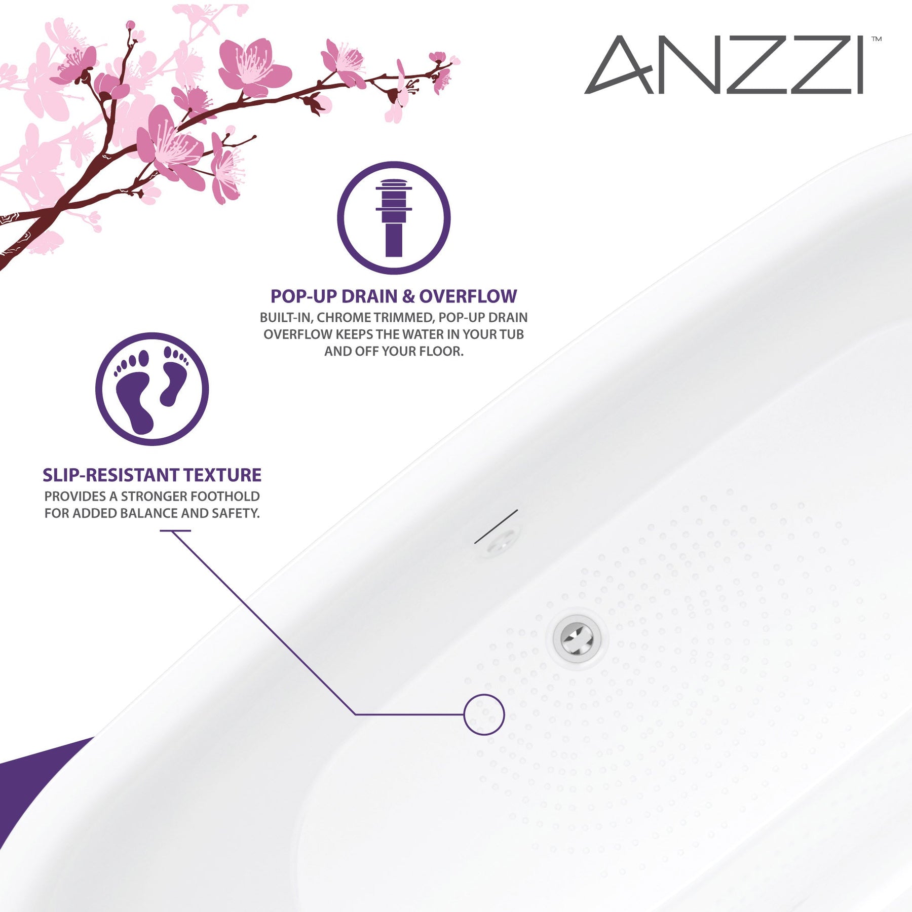 ANZZI Ami 67 in. Acrylic Flatbottom Freestanding Bathtub, Glossy White, Center Drain