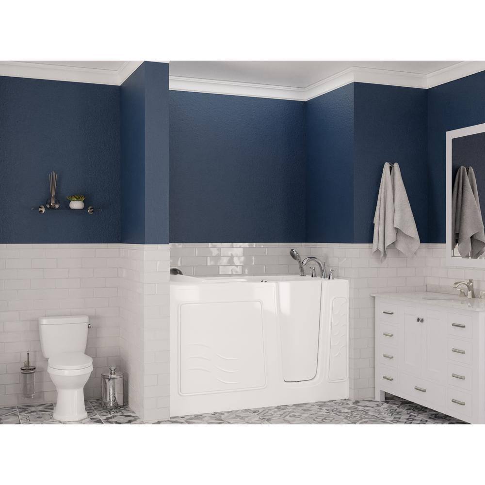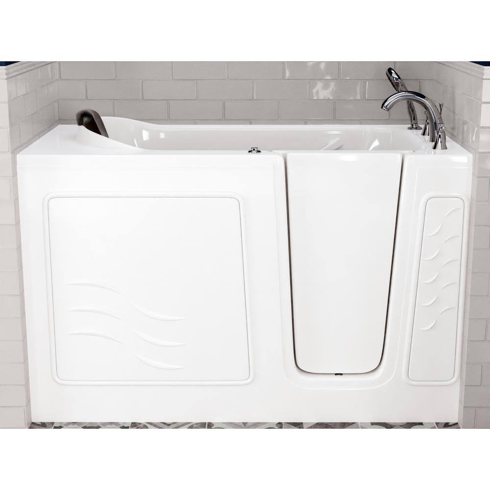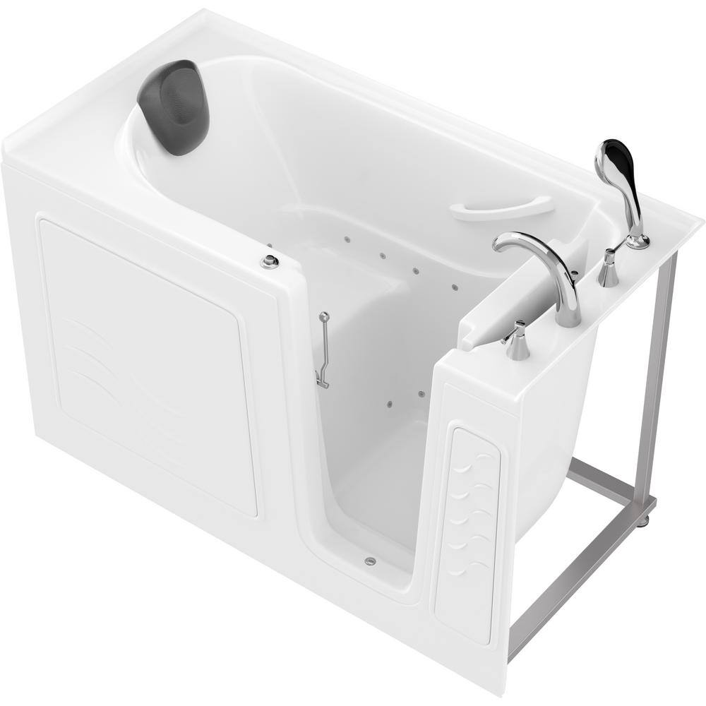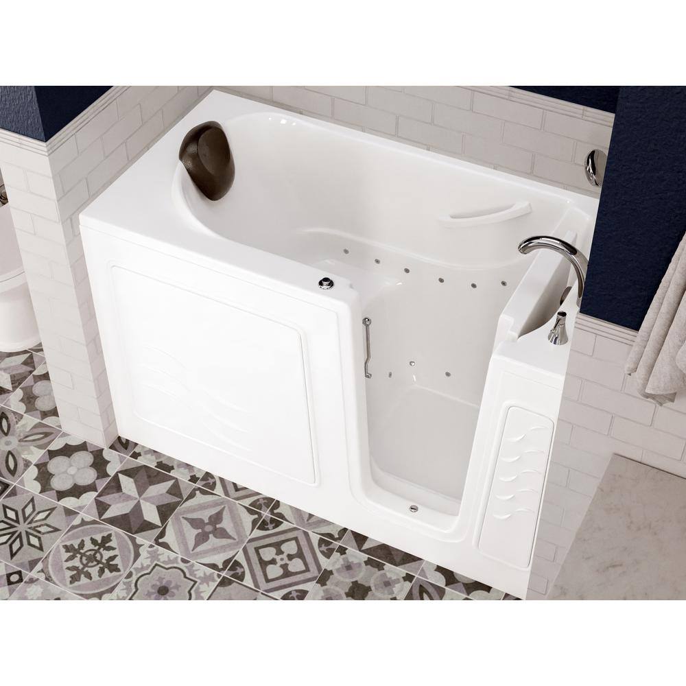 This Universal Tubs Safe Premier walk-in air bathtub delivers accessible bathing with a right-hand door and ADA-compliant seat. The fiberglass-reinforced, triple-gelcoat white finish pairs with 23 air jets (115 micro-bubble outlets) and a fast-fill faucet set for a soothing, efficient experience.