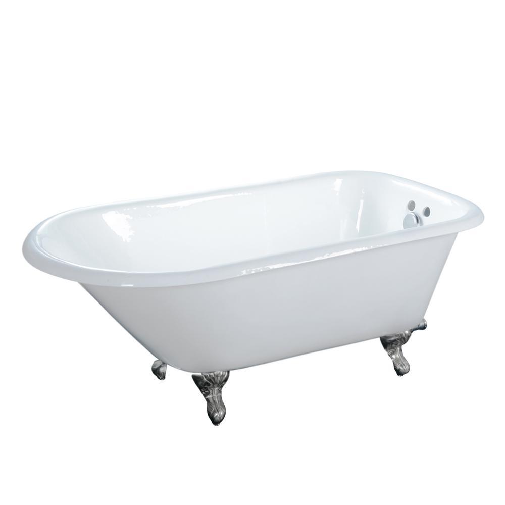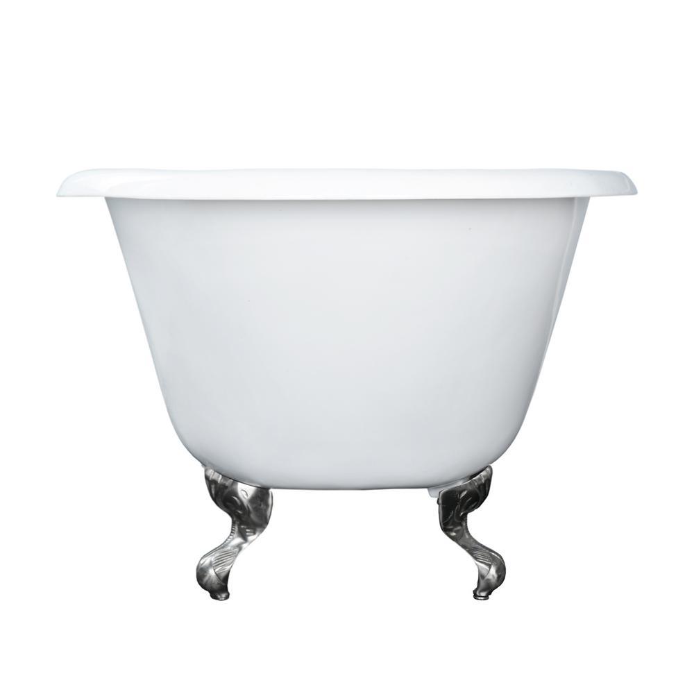 Abbey 48 in. Cast Iron Roll Top Clawfoot Non-Whirlpool Bathtub in White with Faucet Holes and Polished Chrome Feet
