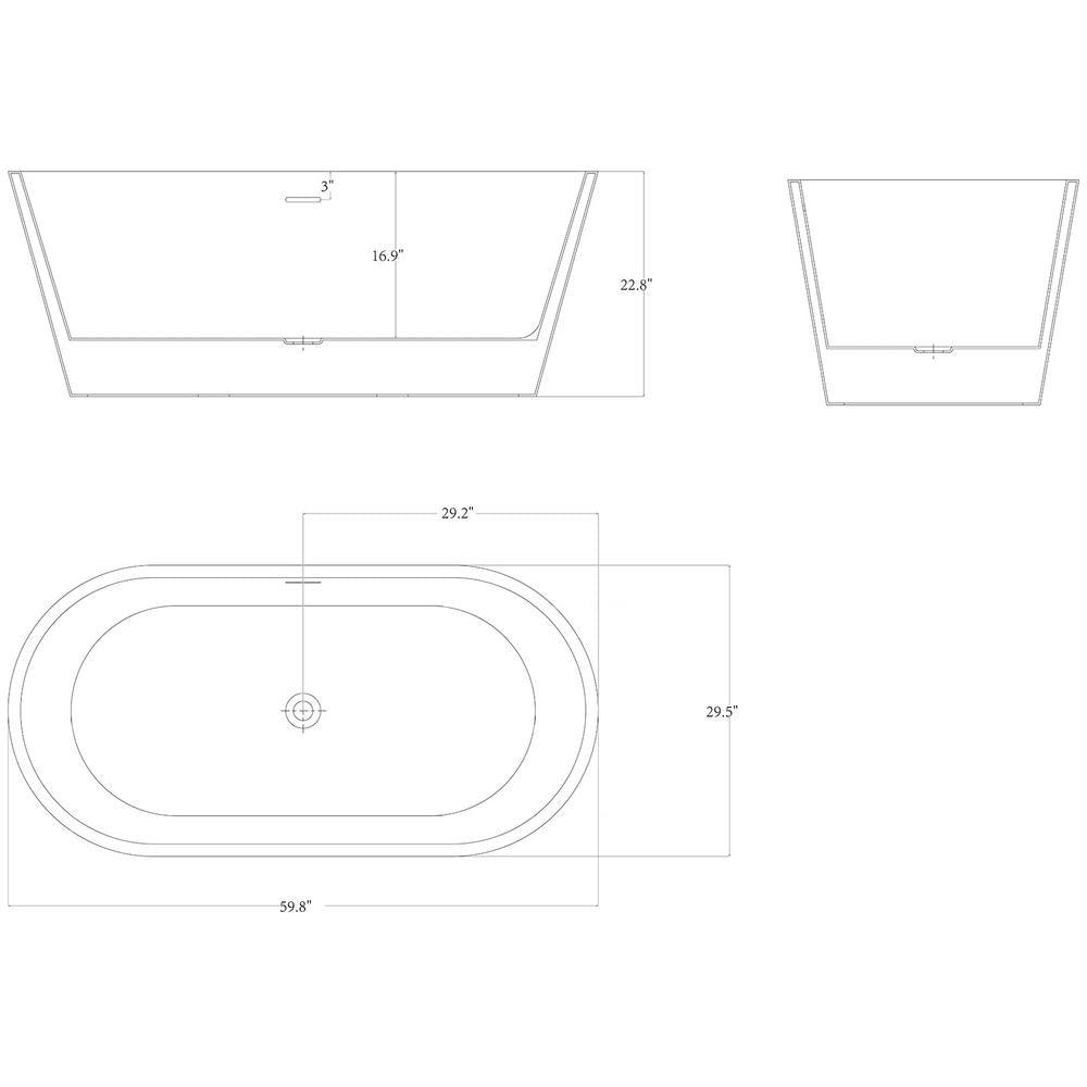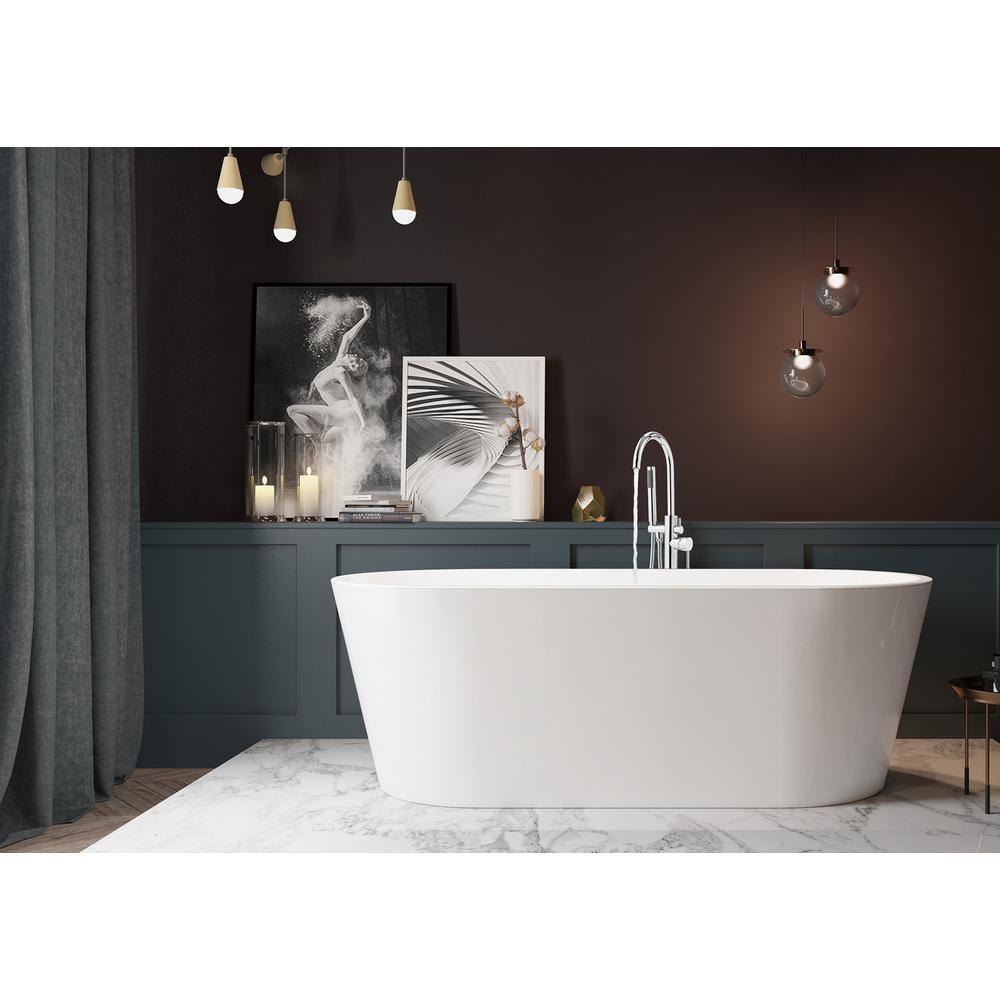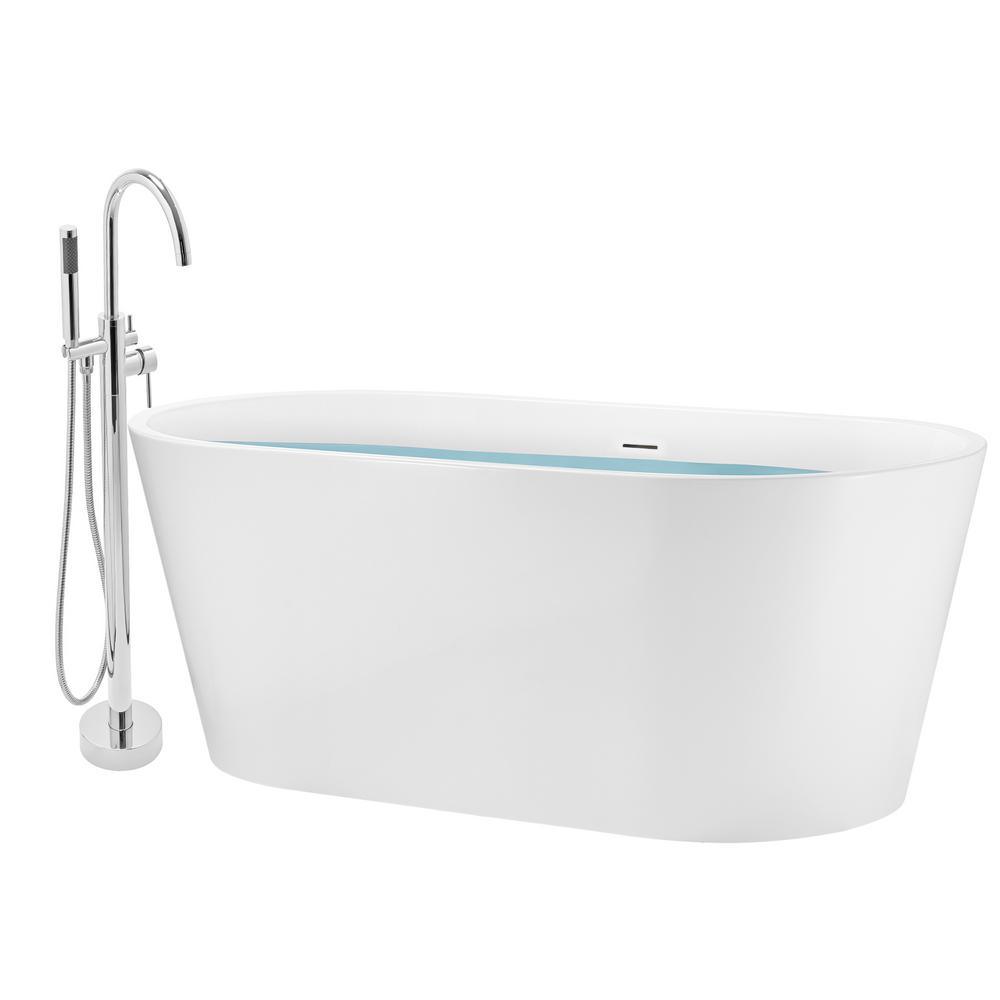 59 in. Glossy White Acrylic Tub for Bathtub with Tub Filler combo - Modern Flat Bottom Stand Alone Tub