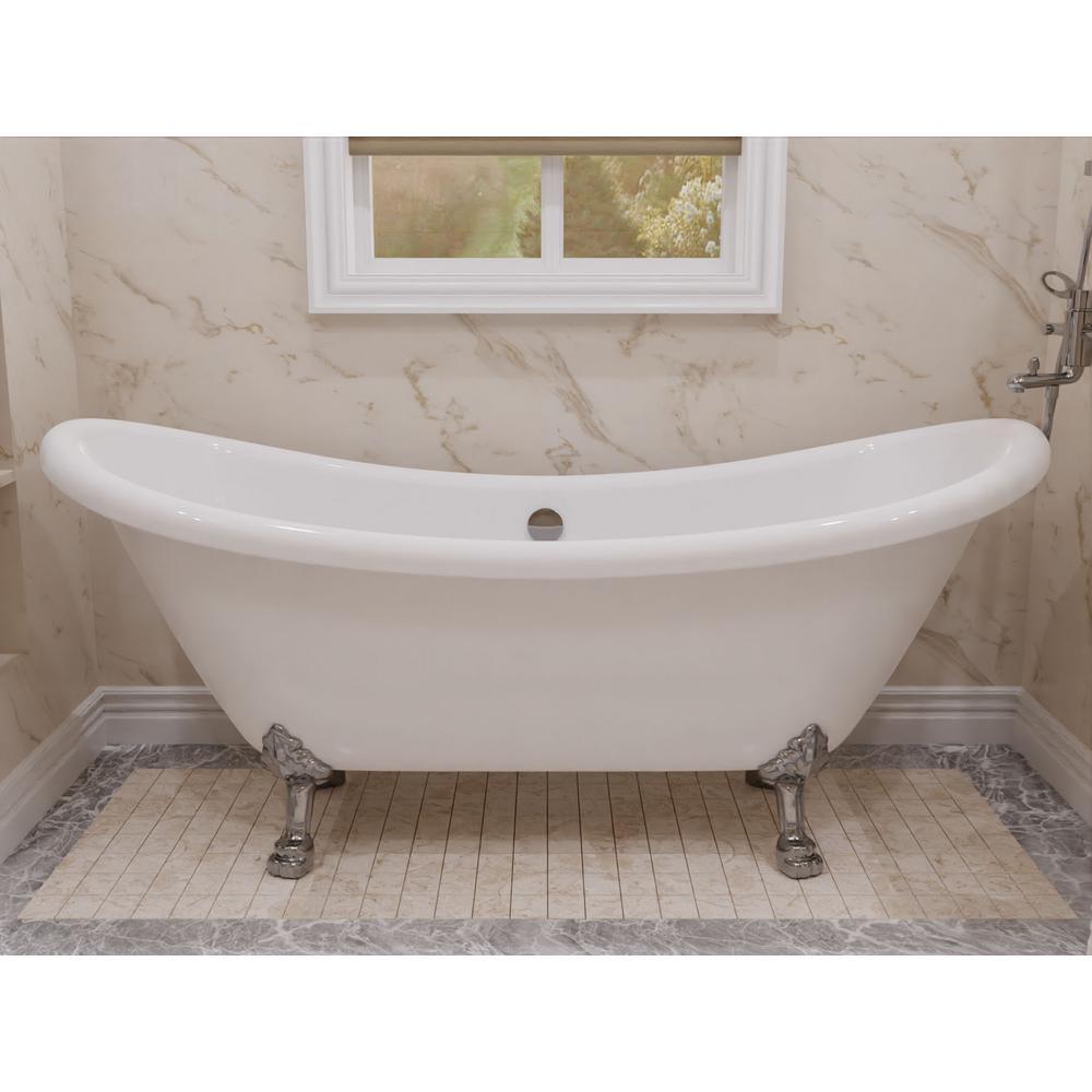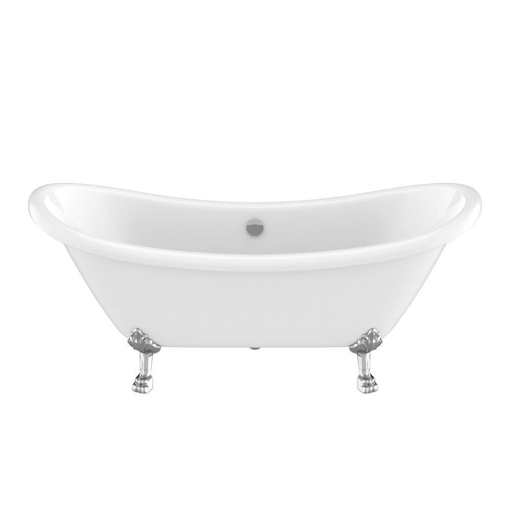 Belissima 69.29 in. Acrylic Double Slipper Clawfoot Non-Whirlpool Bathtub in White with Chrome Lion's Paw Feet