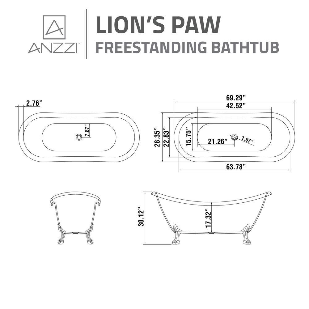 • Polished chrome finished lion's paw style claw feet