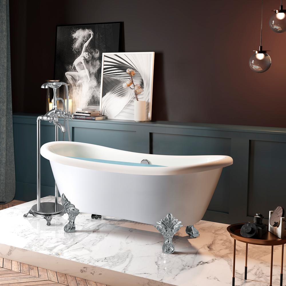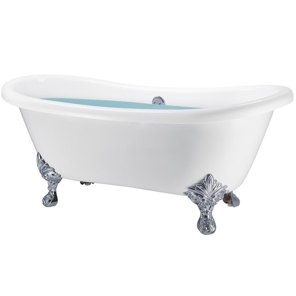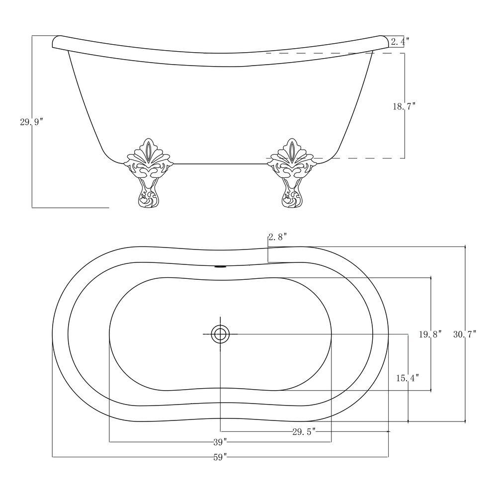 59 in. Fiberglass Double Slipper Clawfoot Non-Whirlpool Bathtub in Matte White