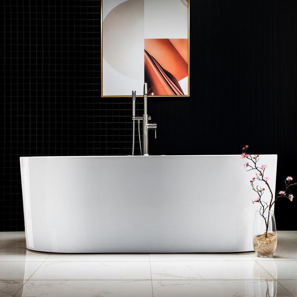 This freestanding silhouette casts a clean, sculptural line that instantly elevates the bath. The whisper-quiet jets and chromotherapy glow create a cocoon of calm, while the glossy acrylic finish reflects light with refined elegance. Style it with a streamlined floor-mount filler and warm wood accents to balance its contemporary poise. Consider it an everyday retreat—essential to a life of polished comfort.