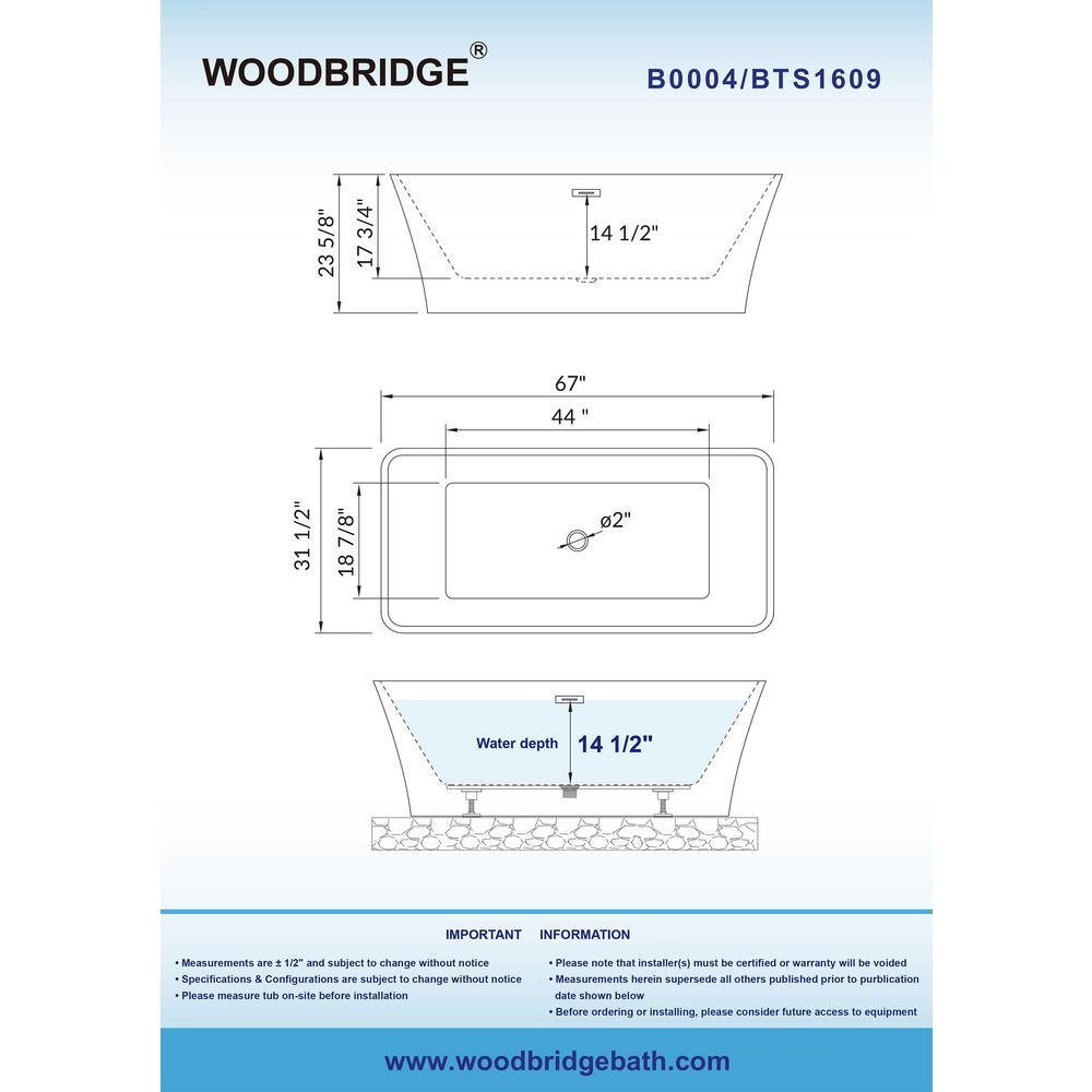 WOODBRIDGE Millville 67 in. Acrylic Freestanding Double-Ended Soaking Bathtub with Center Drain and Overflow, White