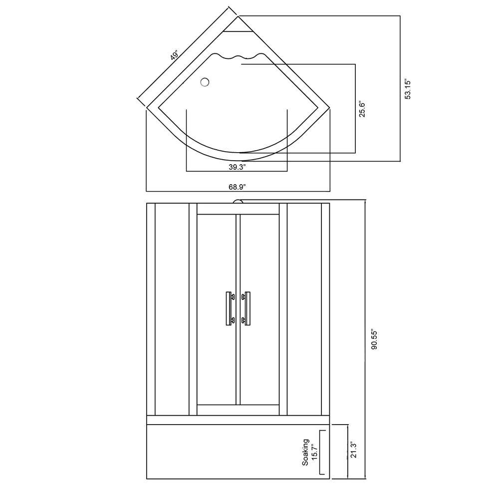 • Bath tub size: size 49 in. x 49 in. x 90.55 in. high