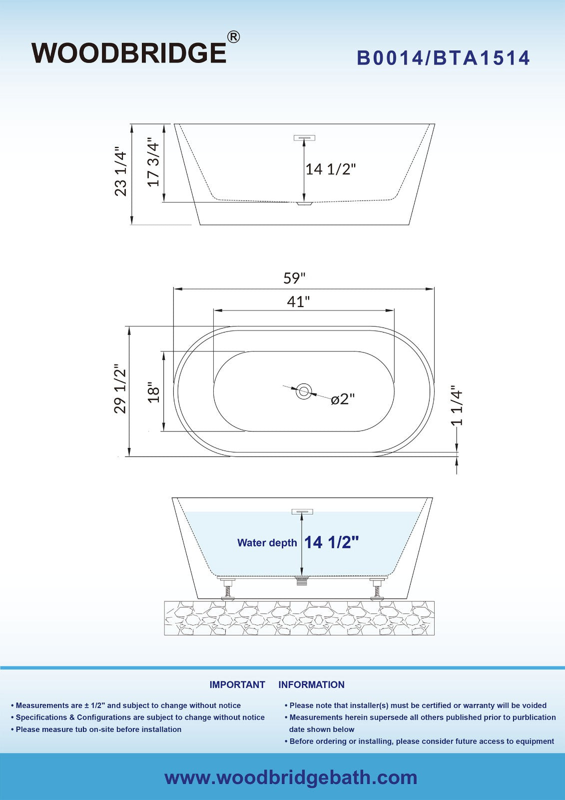 | Water Depth to Overflow | 14.5 in. |