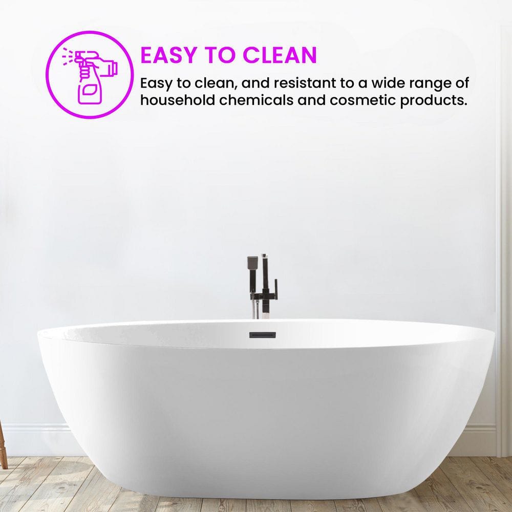 A sleek oval soaking tub crafted from high-quality acrylic with reinforced fiberglass for lasting durability. Freestanding design with center drain and oil-rubbed bronze trim complements contemporary bathrooms and installs easily with a floor-mounted filler.