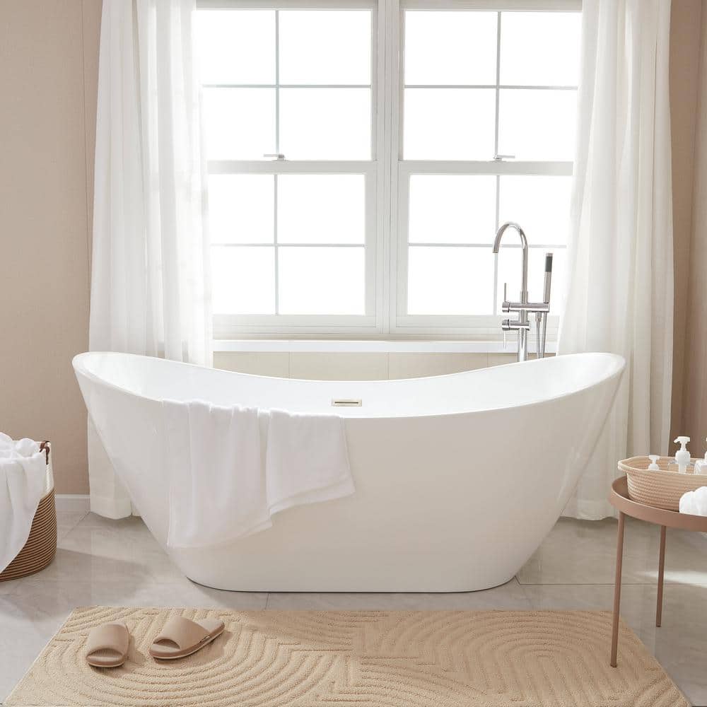 71 in. Acrylic Freestanding Soaking Tub, White/Brushed Nickel