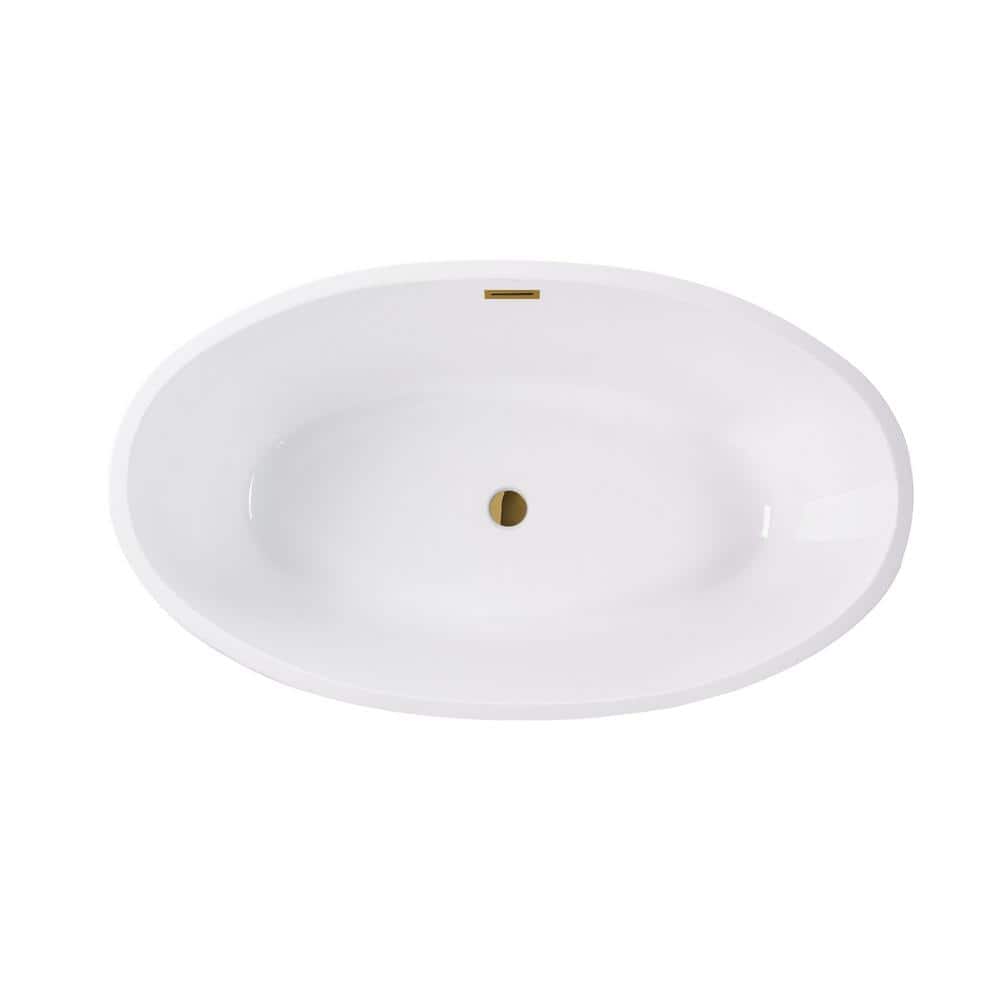 Vanity Art Calais 55 in. L x 32 in. W Acrylic Flatbottom Freestanding Bathtub with Center Drain in White/Titanium Gold
