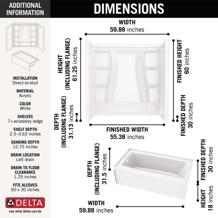 Create a luxurious bathing experience with the Delta Classic 500 Alcove Bathtub and Wall Surrounds in High Gloss White. Designed for easy installation, these systems offer unique details for a better bathing experience every day. From a revitalizing morning shower to a soothing evening soak, this bundle includes all the necessary components for a complete alcove bath. For a curated look, pair it with a Delta shower available in various styles and finishes. Rest assured with our comprehensive warranty when installing our top-quality bathing products.