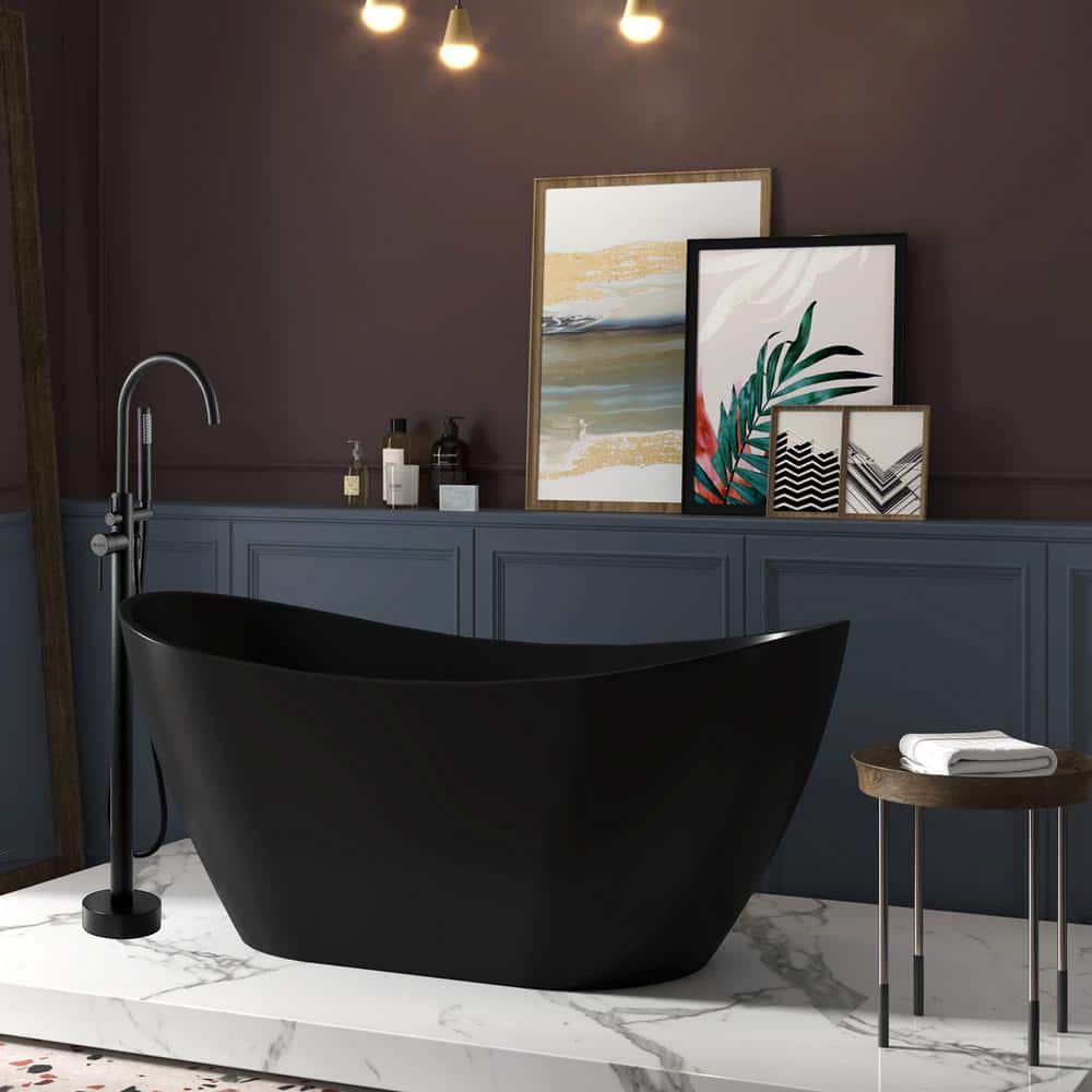 60 in. Matte Black Freestanding Double Slipper Bathtub