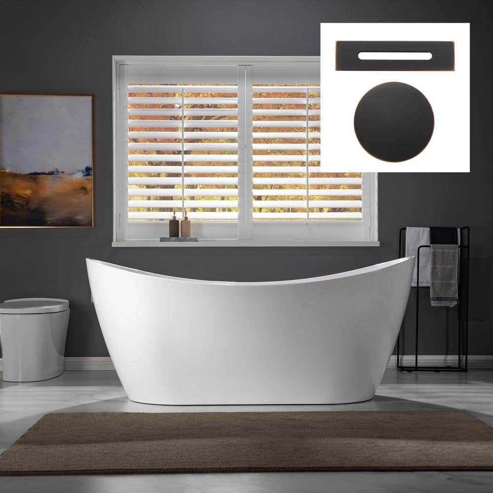 This double slipper silhouette brings a graceful, sculptural presence to the bath, its high-gloss white acrylic shimmering like porcelain. The oil rubbed bronze trim punctuates the form with a warm, refined accent, while the generous basin invites a long, luxurious soak. Style it with a sleek floor-mounted filler and soft, layered textiles to create a serene spa vignette. A chic centerpiece that elevates daily ritual into pure indulgence.
