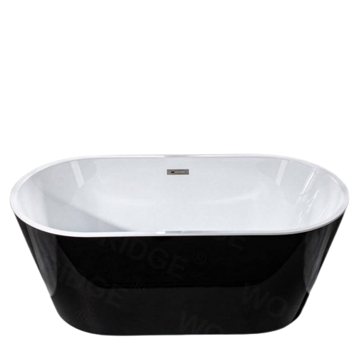 This freestanding silhouette brings a sculptural calm to the bath, its double-ended form inviting a lavish soak. The glossy acrylic surface catches the light beautifully while the black exterior adds chic contrast. Style it with a soft neutral rug and matte fixtures for a refined, gallery-like ambiance. A timeless piece that anchors luxurious daily rituals.