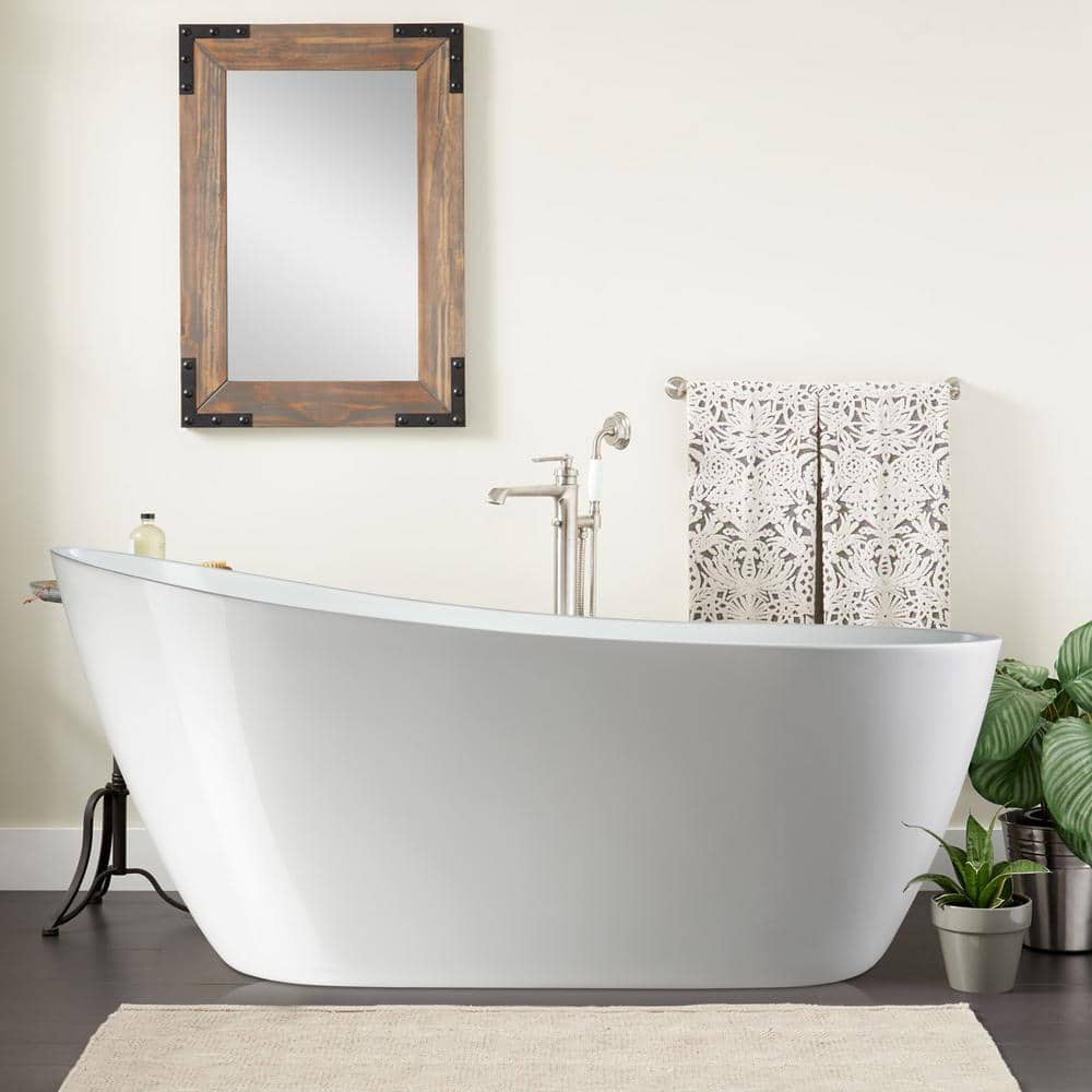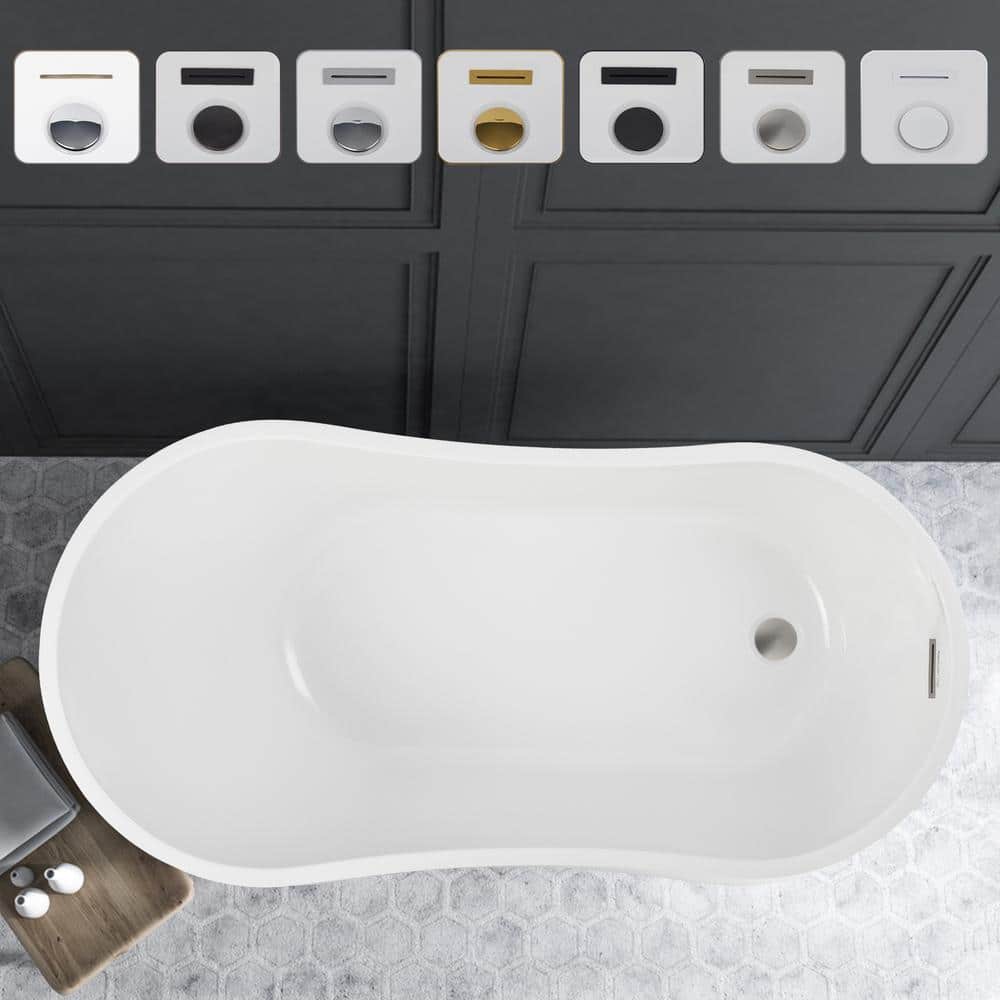 55-inch Freestanding Acrylic Soaking Tub, White/Brushed Nickel