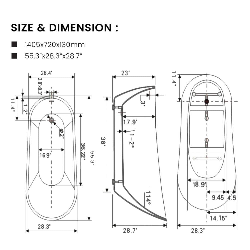 • Freestanding Design: Easy to place anywhere with floor-mounted faucet compatibility