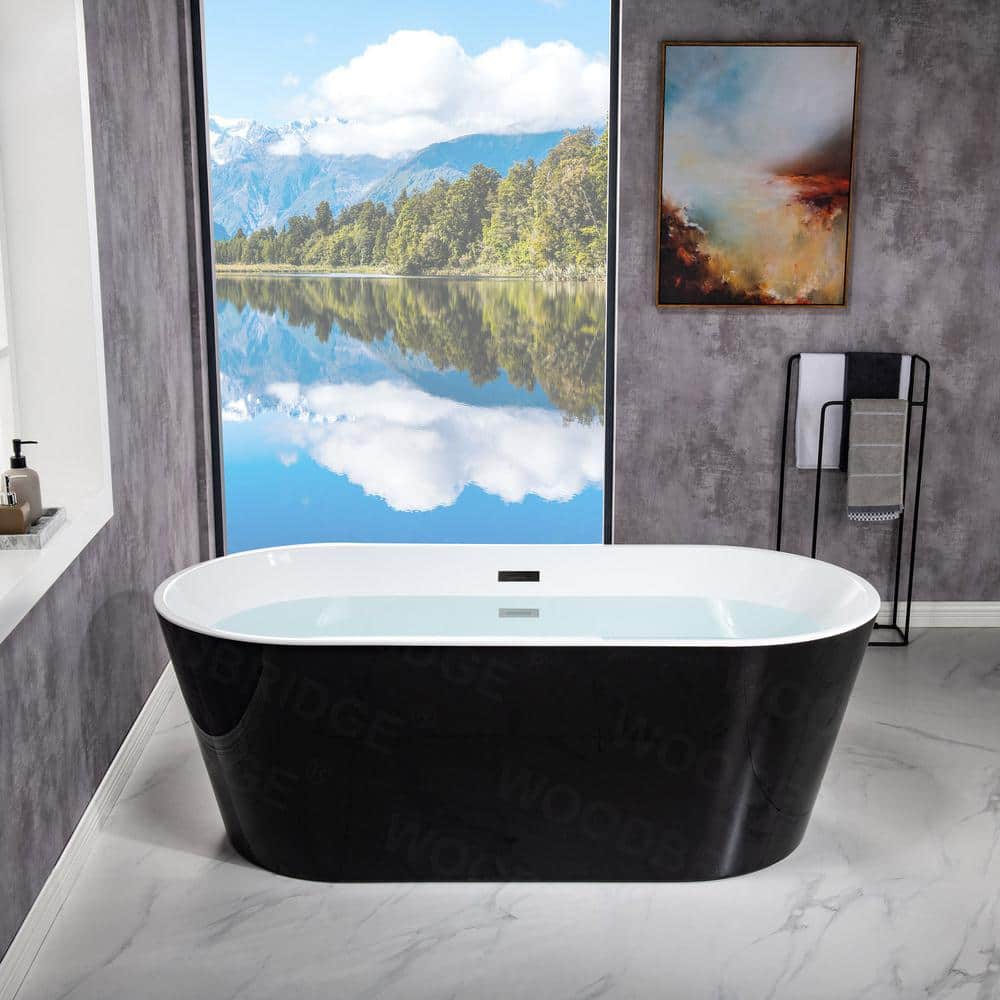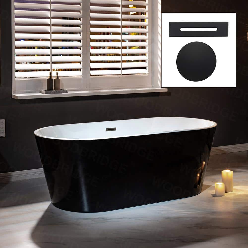 WOODBRIDGE Piscataway 67 in. Acrylic FlatBottom Double-Ended Freestanding Bathtub with Matte Black Overflow and Drain, Black