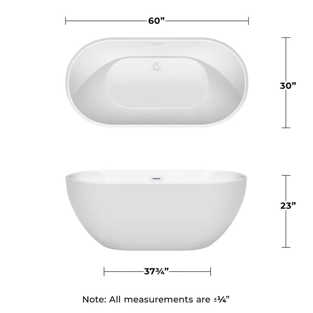 Wyndham Collection Brooklyn 60 in. Acrylic Freestanding Bathtub in White with Shiny Trim