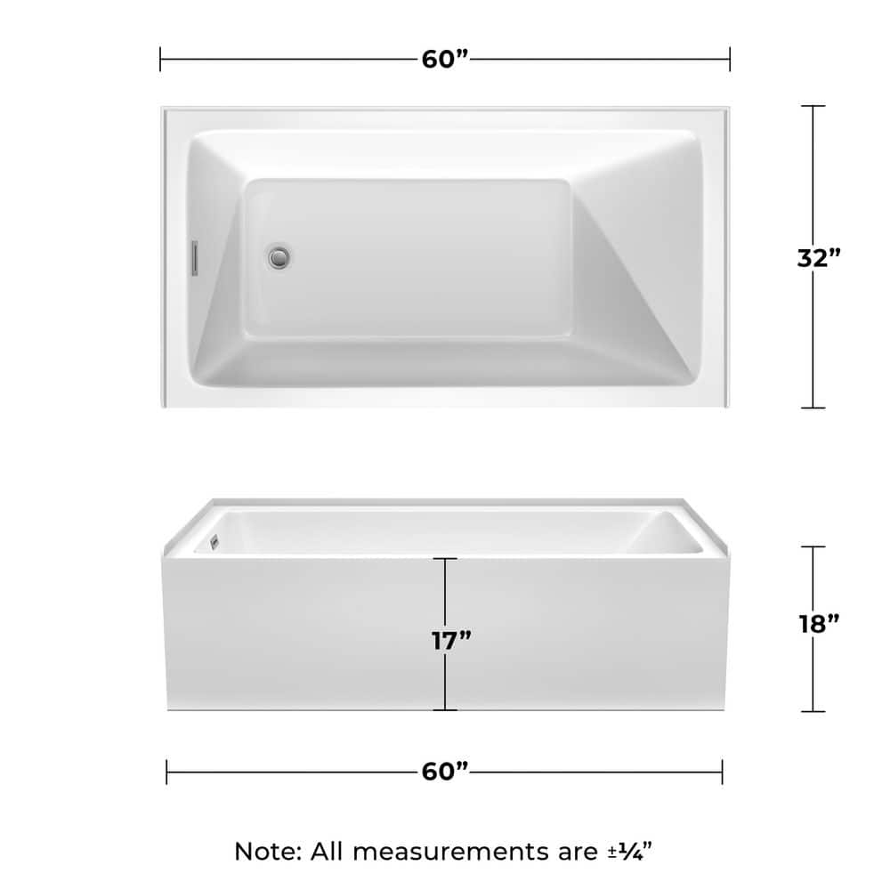 Wyndham Collection Grayley 60" x 32" Alcove Soaking Bathtub with Left Drain and Chrome Trim