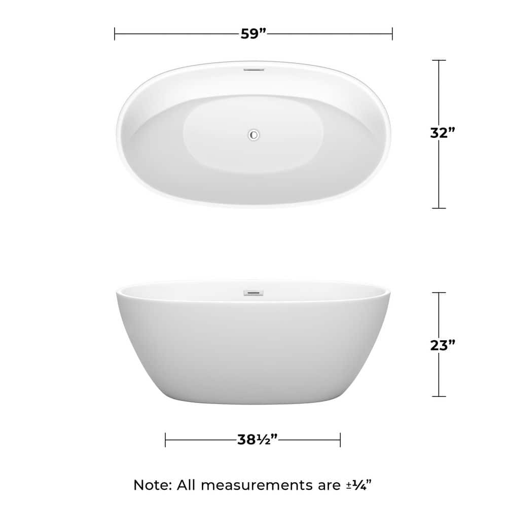 Wyndham Collection Juno 59 in. Acrylic Freestanding Bathtub, Matte White with Chrome Trim