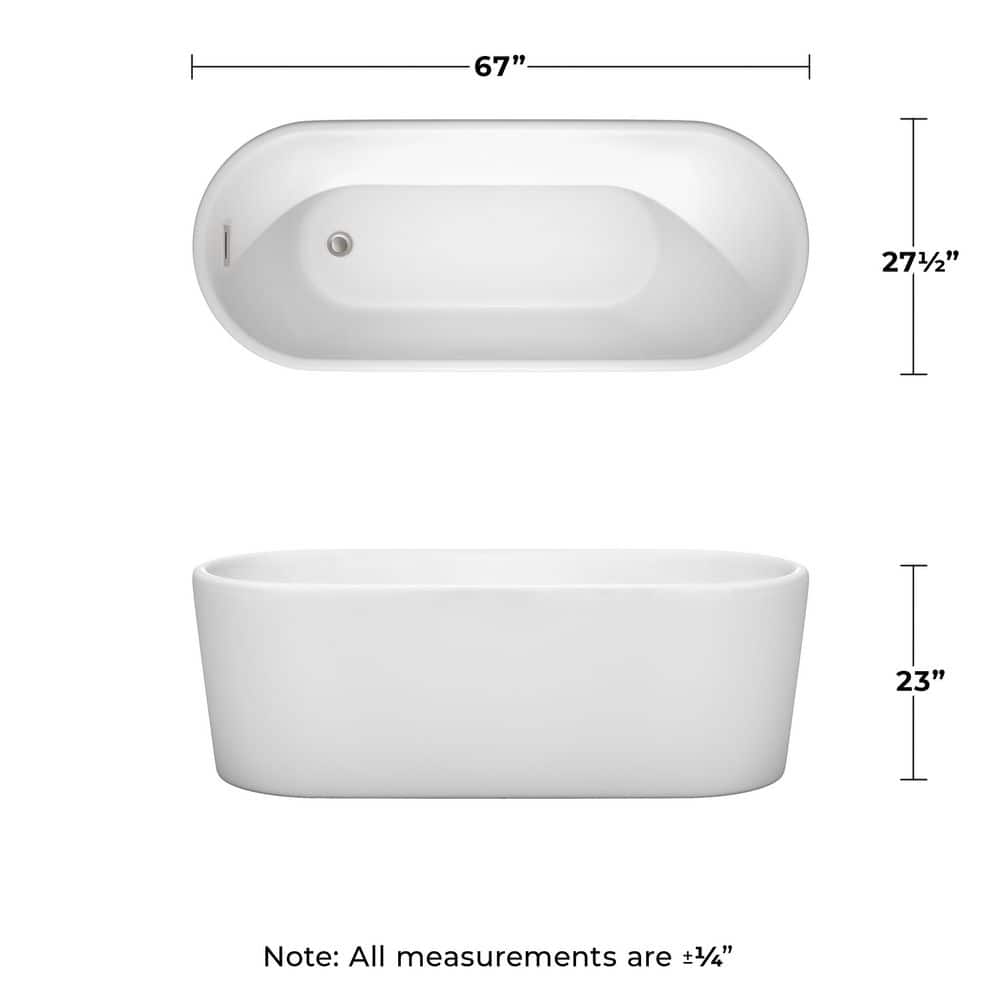 Wyndham Collection Ursula 5.6 ft Acrylic Freestanding Bathtub in White with Brushed Nickel Trim