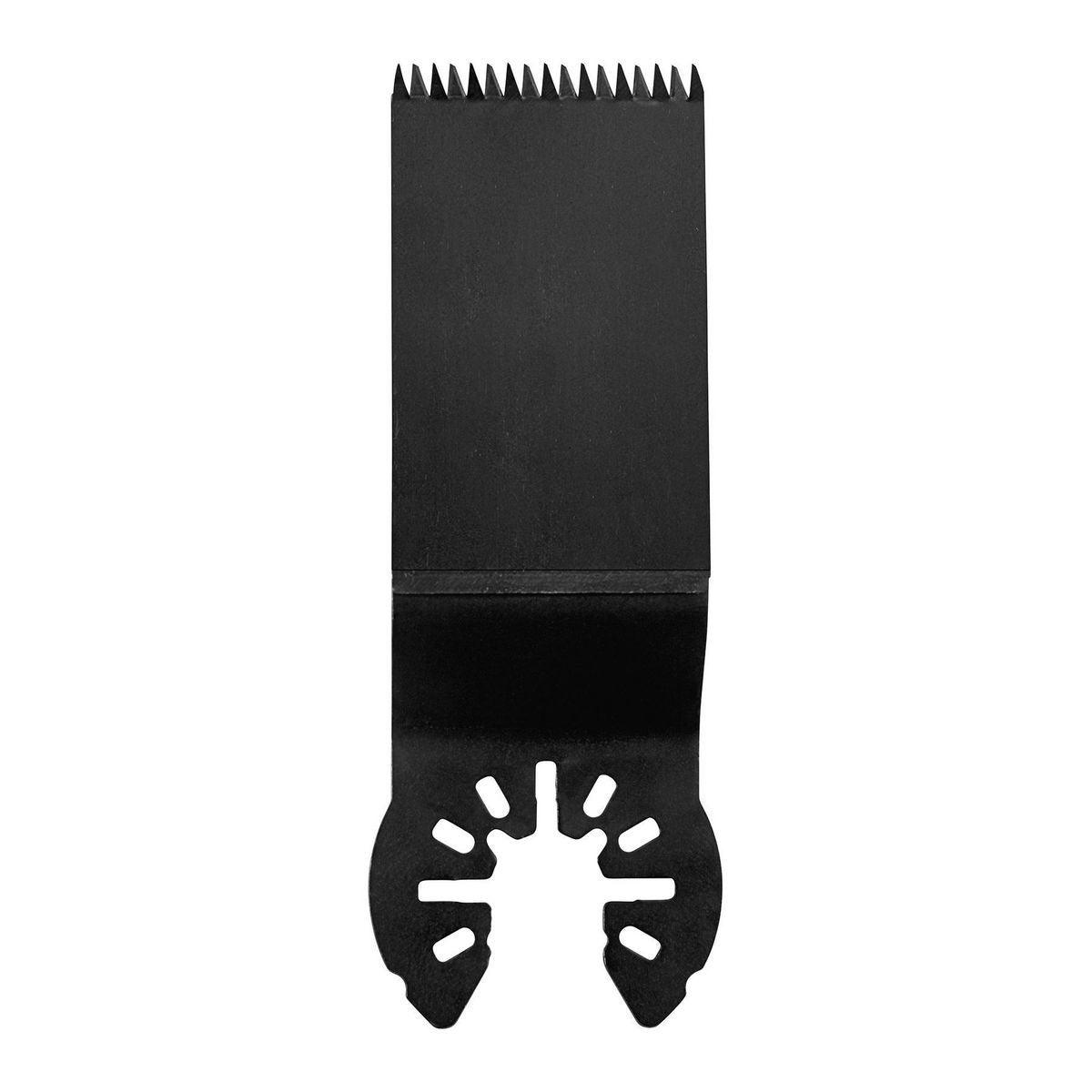 This 1-3/16 in. wide bi-metal precision tooth plunge/flush cutting blade works with almost all brands of Oscillating Multi-Tools to make clean plunge cuts in hardwood and softwood. Precision teeth are designed for quick and precise cuts in wood, plastic and drywall. Durable bi-metal construction provides up to 2x Life compared to similar products in its class.