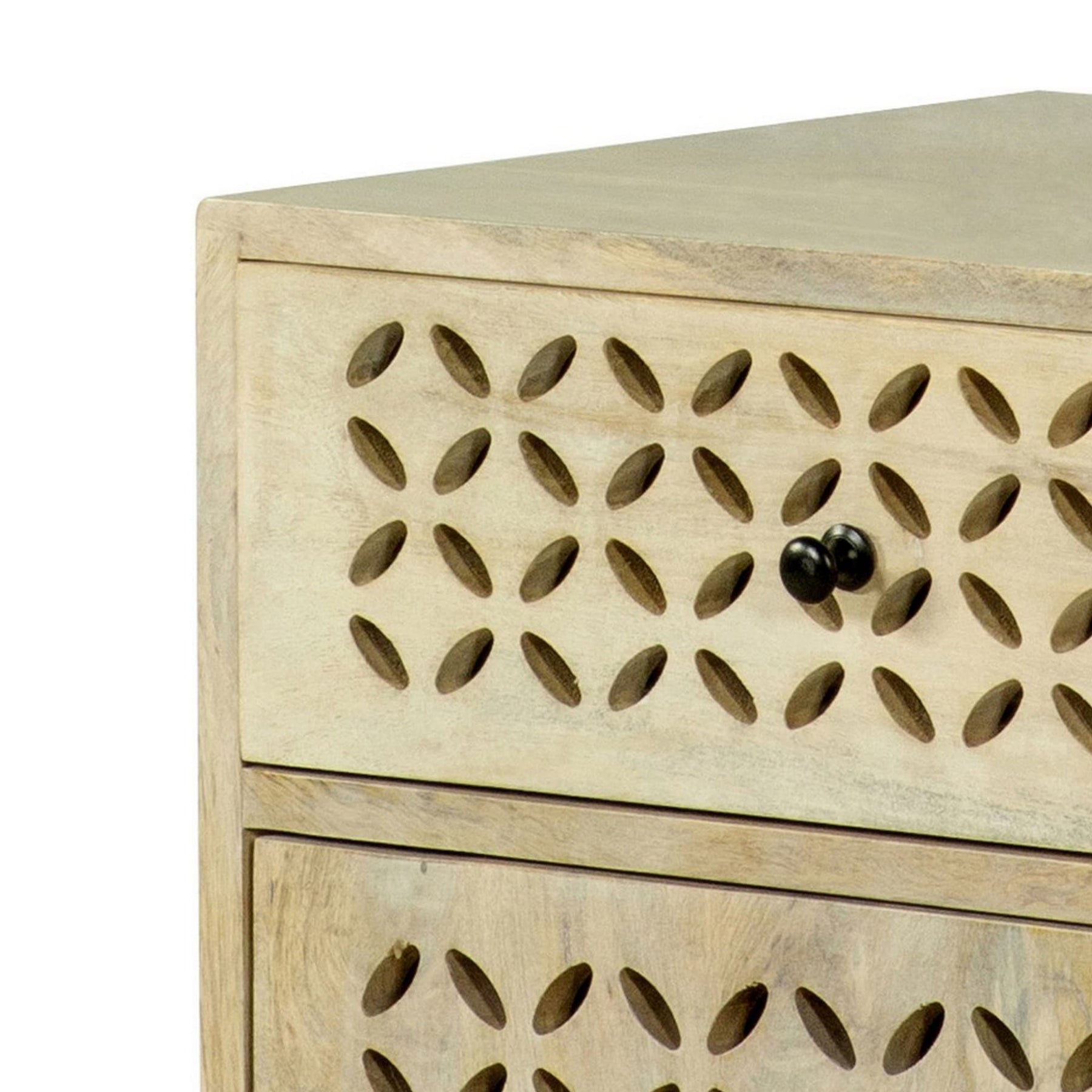 Enhance your living space with the Benzara Gray Accent Chest, a seamless fusion of rustic elegance and contemporary design. Crafted from eco-friendly mango wood, this cabinet features a sophisticated diamond lattice cutout pattern and provides ample storage with its top drawer and cabinet space.